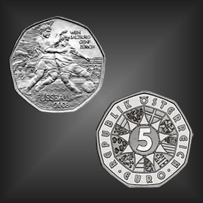 5 EURO Silbermünze "Fussball Dribbling" Österreich 2008