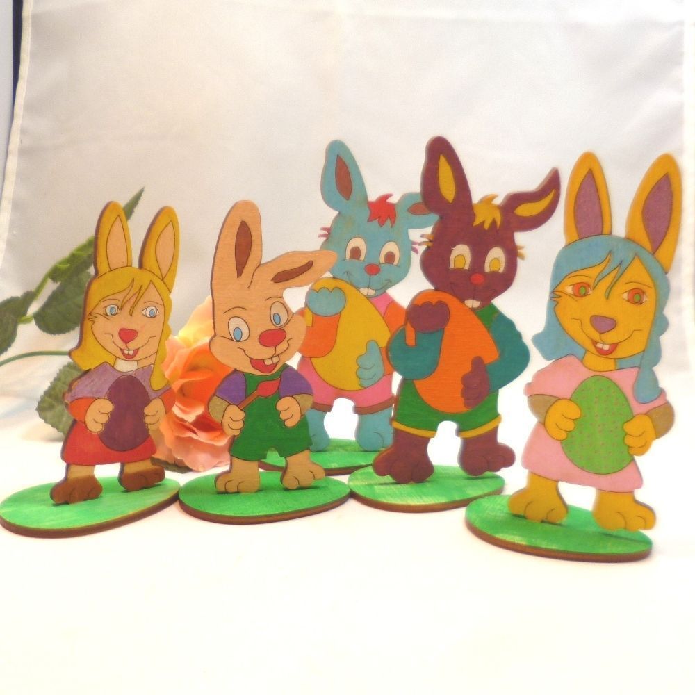 5 Hasenvater aus Holz 12 cm Ostern anmalen DIY Holzhasen Häschen Kinderbasteln