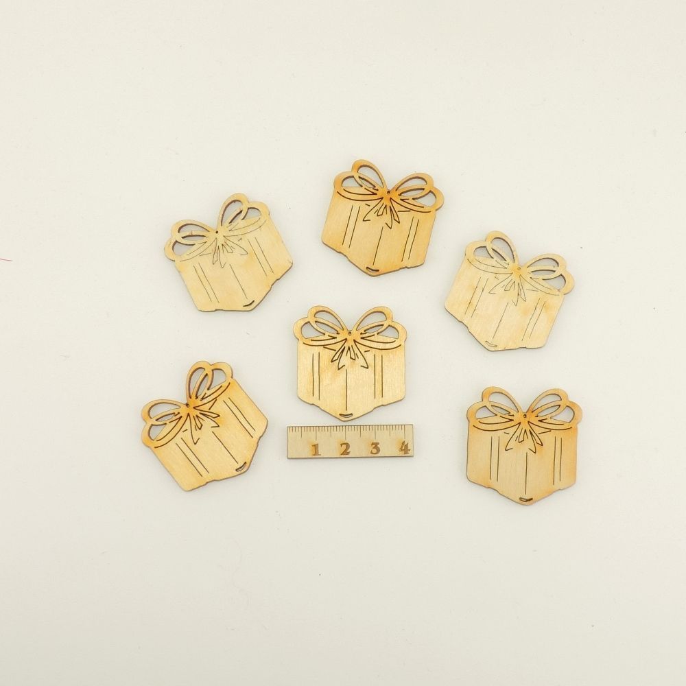 Restpostenartikel 5 Geschenkpakete Die Päckchen haben eine Breite von ca. 3,9cm und eine Höhe von ca. 4cm. Sie sind aus 3mm starkem heimischem Birkensperrholz gelasert. Die Geschenke sind beidseitig gelasert. Die Pakete können Sie zum Basteln, Verzierungen, oder auch als Tischdekoration nutzen Die G