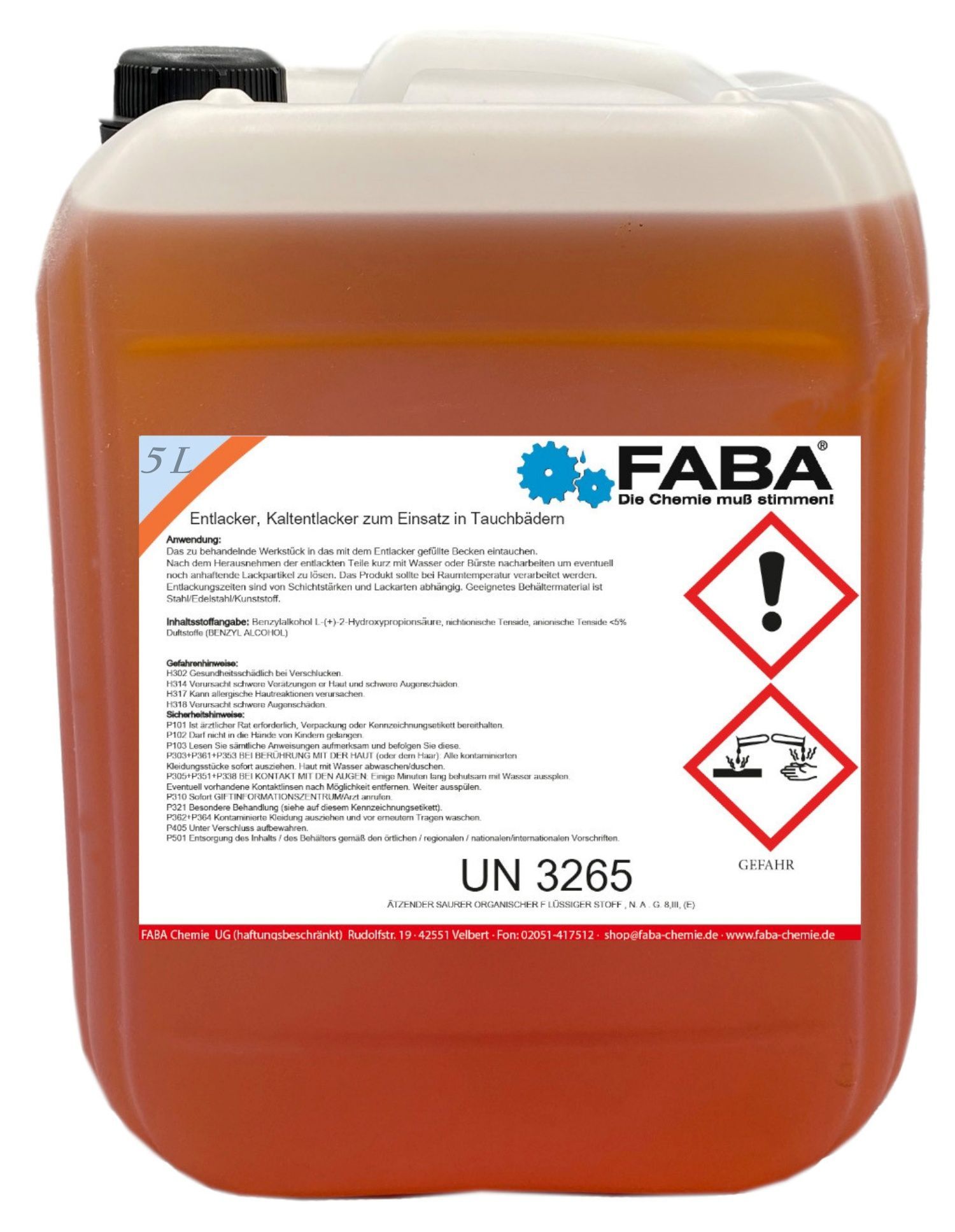Produkte Über FABA 5 L Lackex 2000 A Kaltentlacker Entlacker Farbentferner LACKEX 2000 A - Kaltentlacker zum Einsatz in Tauchbädern. - Alkalischer Hochleistungsentlacker. - Für extreme Beanspruchungen - Kein Brandrisiko Lackex 2000 A ist ein anwendungsfertiger Kaltentlacker speziell für den Einsatz