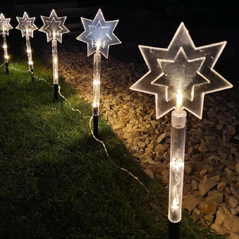 5 LED Leuchtstäbe warmweiß Stern Batterie, Timer außen 36,5 x140cm 35077