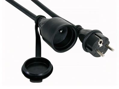 • GUMMI-VERLÄNGERUNGSKABEL - 5 m - 3G1.5 - Schwarz - Stecker-typ E (FRANZÖSISCHES SYST