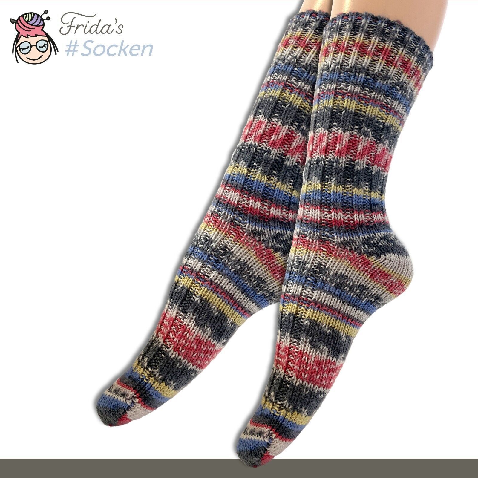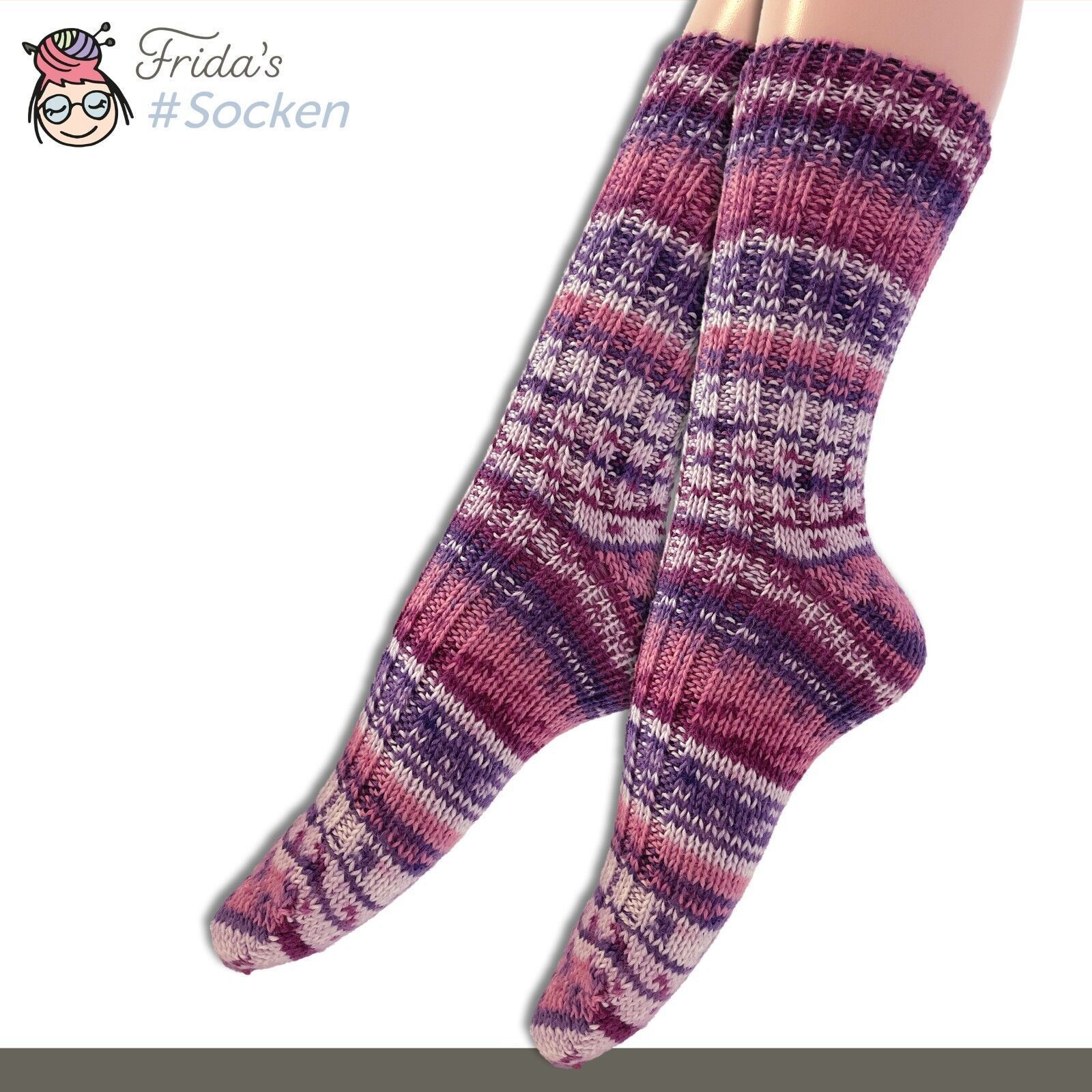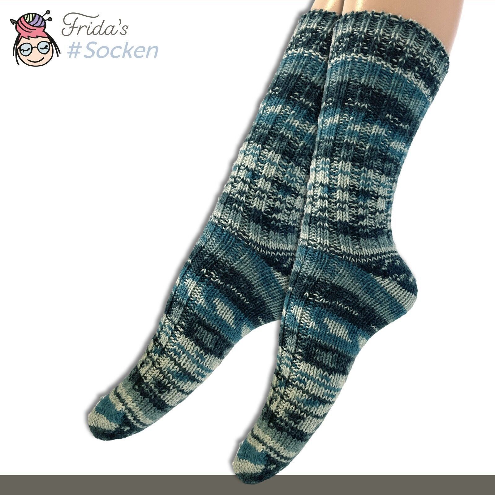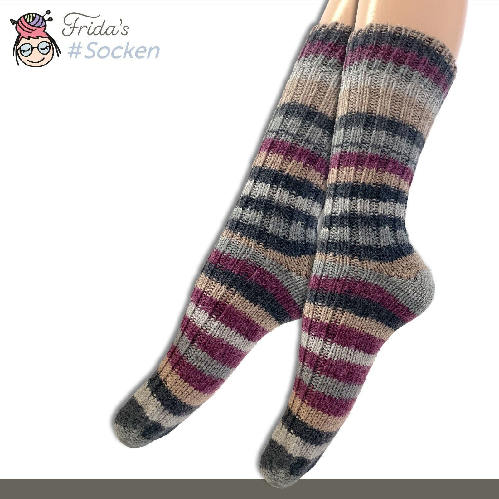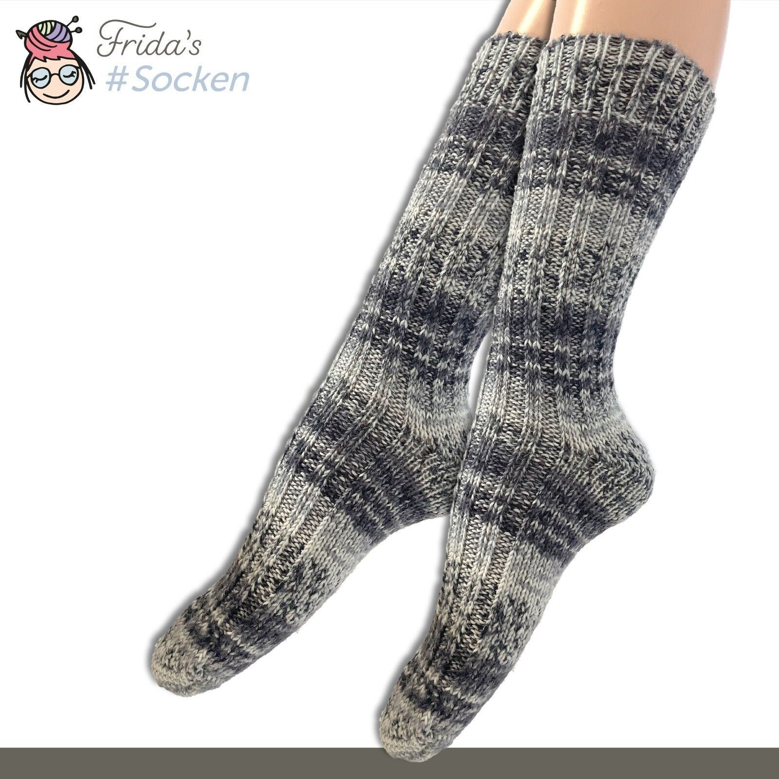 5 Paar Frida's Socken gestrickte Wollsocken aus Merino-Polyamid-Mischung für Damen und Herren in den Größen 35-40 und 40-45 Produktbeschreibung • Material : 75% Schurwolle (Merino) superwash 25% Polyamid • Herstellung : Maschinengestrickt • Fadenanzahl : 4-fädig • Eigenschaften :