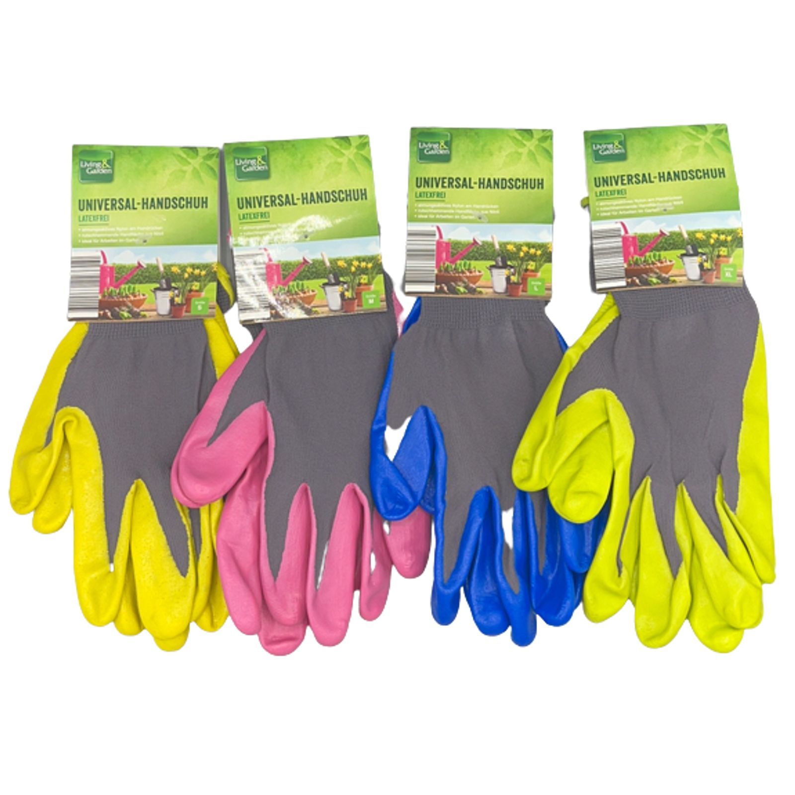 zu unserem Shop Verkäuferprofil Bewertungen Newsletter Kontakt 5 Paar Gartenhandschuhe Universal Handschuhe Atmungsaktives Nylon S M L XL 5 Paar pro Packung Latexfrei Bietet ein angenehmes Tragegefühl dank atmungsaktiven Nylon am Handrücken Rutschhemmende Handflächen aus Nitril Ideal für Arbeiten im