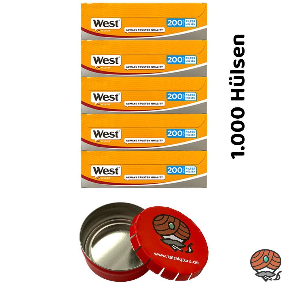 1.000 West Yellow King Size Filterhülsen + 1 Taschenaschenbecher (nicht wählbar) Hülsen: Die Filterhülsen eignen sich zum Stopfen von allen handelsüblichen Volumen- Stopftabaken. Zum Stopfen dieser Filterhülsen benötigen Sie einen Stopfer für Standardhülsen oder ein variables Stopfgerät für Standard