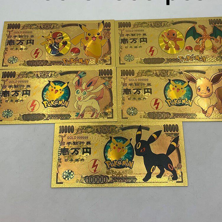 5 Sammelscheine Pokemon vergoldet (CM629)