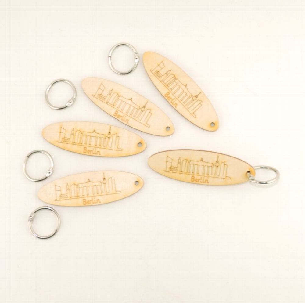 5 Schlüsselanhänger aus Holz Skyline Berlin Anhänger für Schlüssel