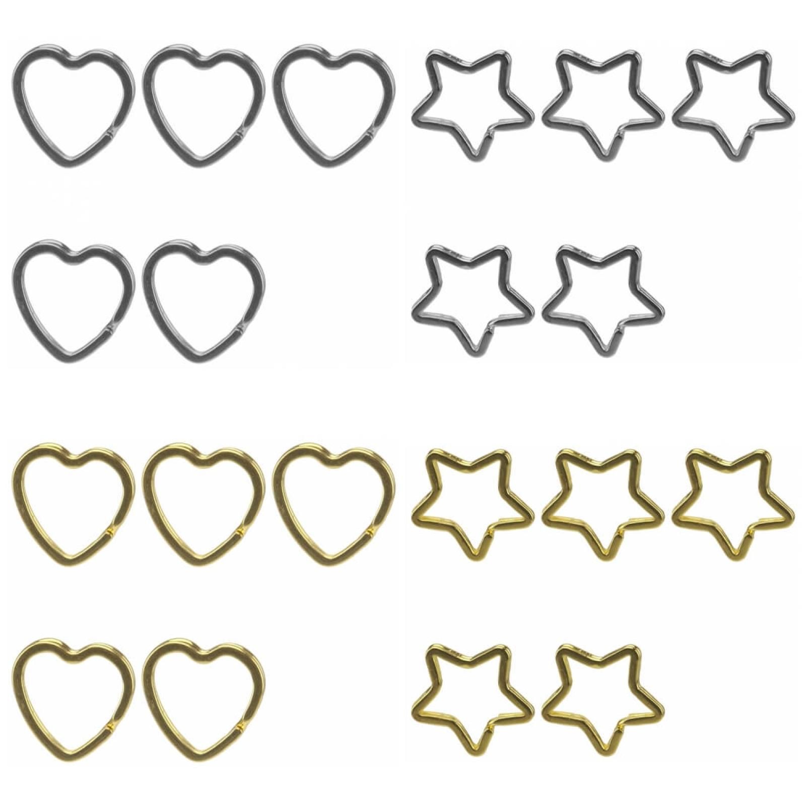 ChiliTec 5 Schlüsselringe gold Herz Stern Schlüssel Ring Herzform Sternform 5 Stück