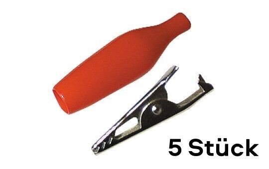 ETT 5 Stück Krokodilklemme, 33 mm, rot, Aufschub-Isolierung