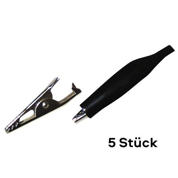 ETT 5 Stück Krokodilklemme, 33 mm, schwarz, Aufschub-Isolierung
