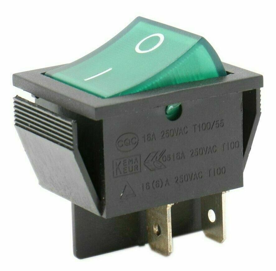 5 Stück Wippschalter grün , 2 polig (4pin) 16A 250VAC 28.5 * 21.5mm beleuchtet