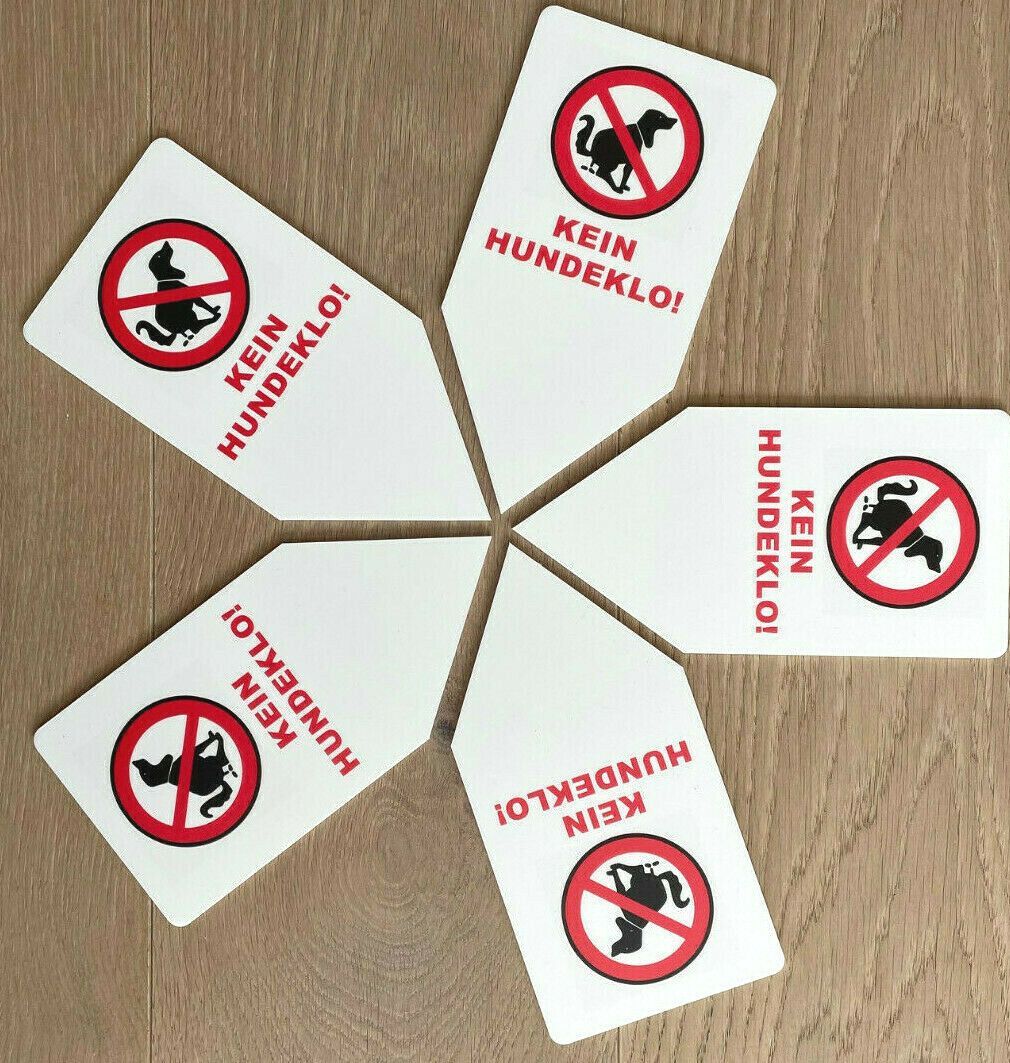 5 Steckschilder KEIN Hundeklo PVC-Einstecker Warnschild mit runden Ecken TOPP!