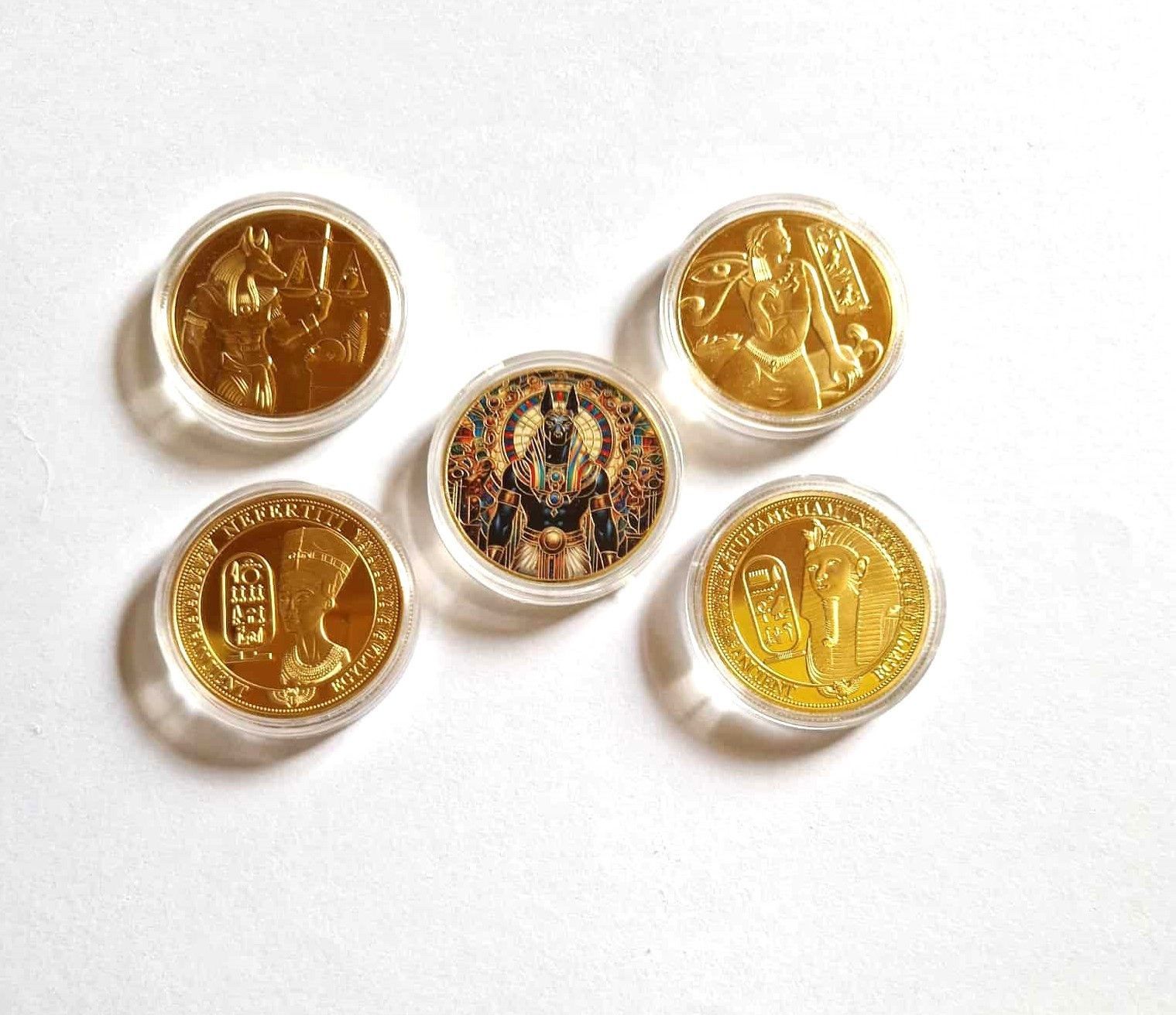 5 Stück Ägyptische Pharao Medaillen vergoldet (PM1309252)