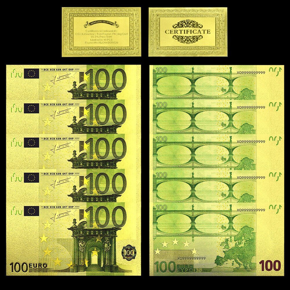 5 Schein 100 Euro Banknoten - 24 K vergoldet Folie - sehr selten Technische Information zum Artikel Material: 24 K vergoldet Größe: original Größe Erhaltung: Neu Verpackung: Folie Das ideale Geschenk oder natürlich auch zum selber sammeln Natürlich handelt es sich nicht um echtes Geld