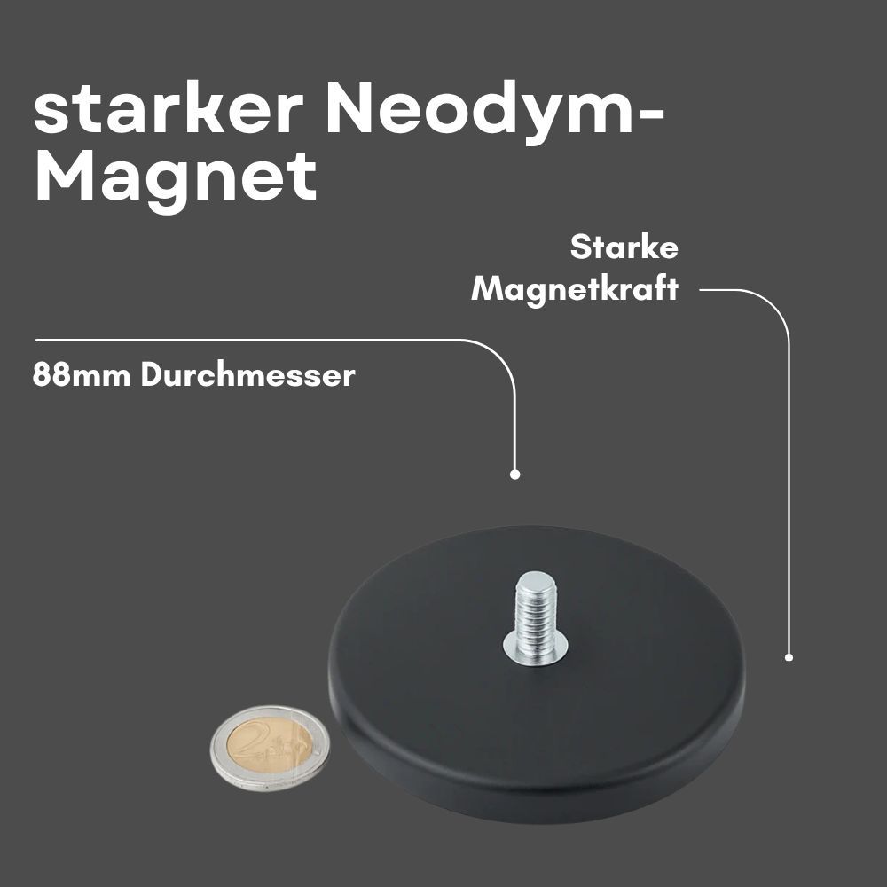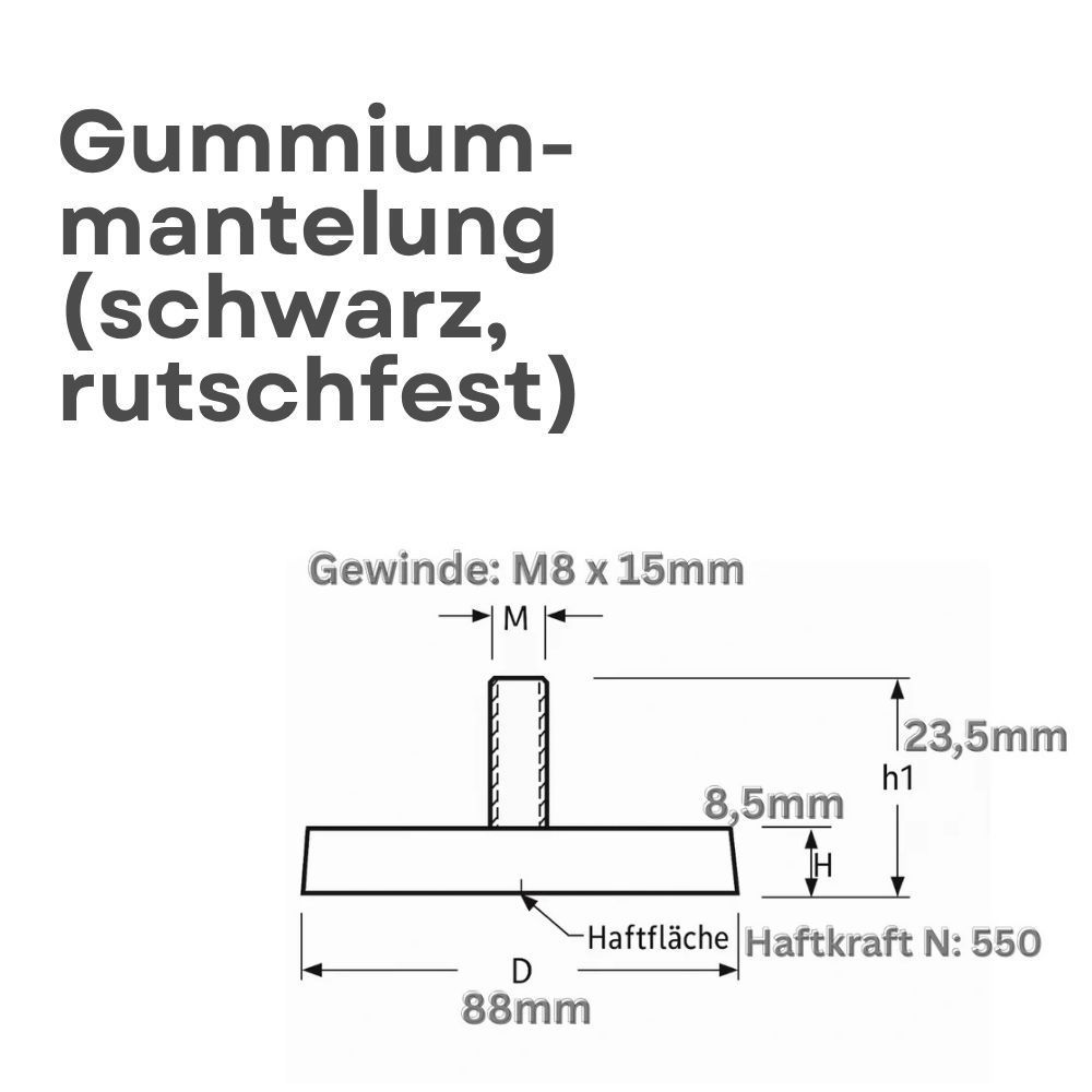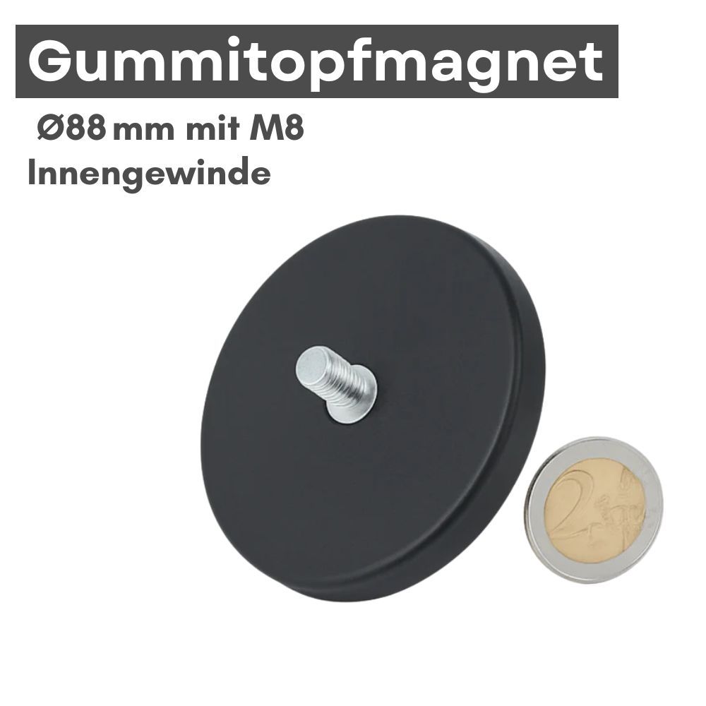 5 Stück Gummitopfmagnet Ø88?mm mit M8 Innengewinde – starker Neodym-Magnet mit Schutz