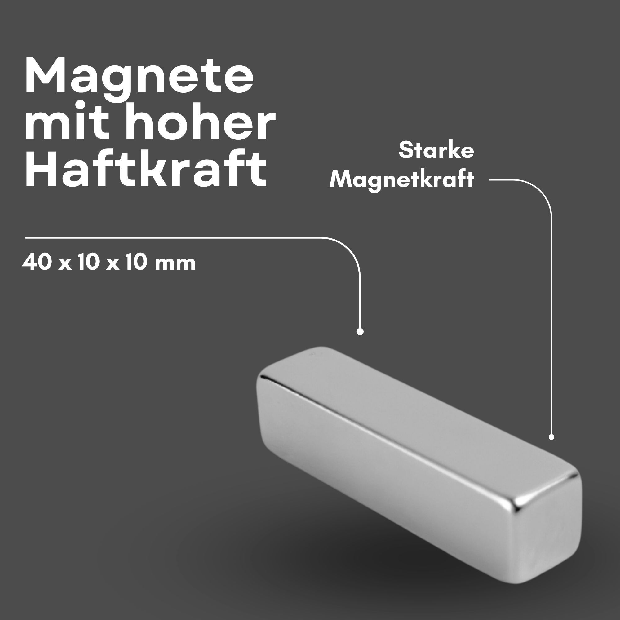 5 Stück Neodym Magnet 40mm x 10mm x 10mm - N38 Supermagnet - Quadermagnete - Hohe Haf