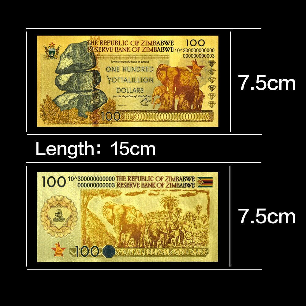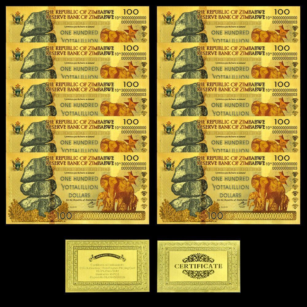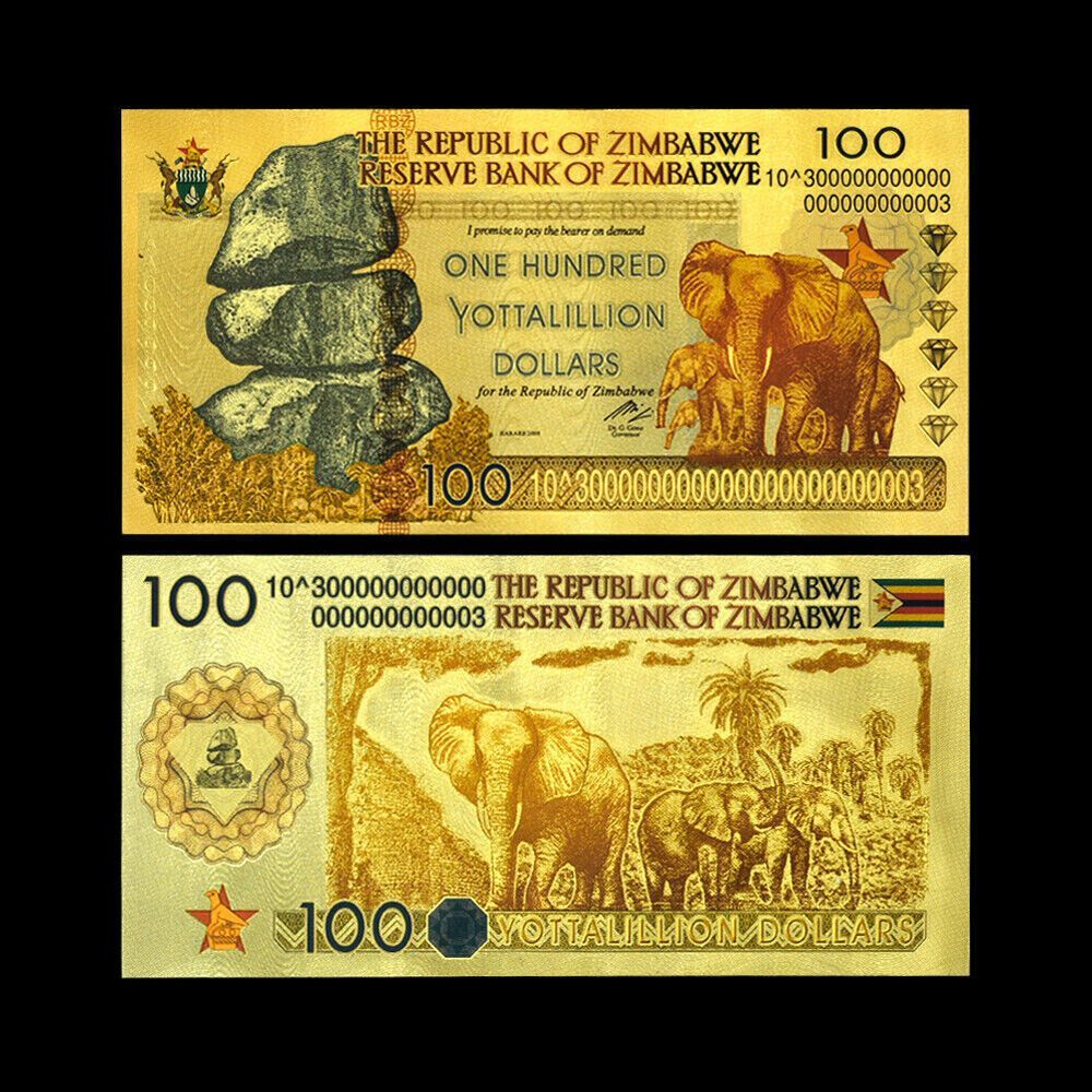 5 Stück/ One Hundert Yottalillion/ Dollar/ vergoldet/ Zimbabwe Souvenier/(GF1/24/27)