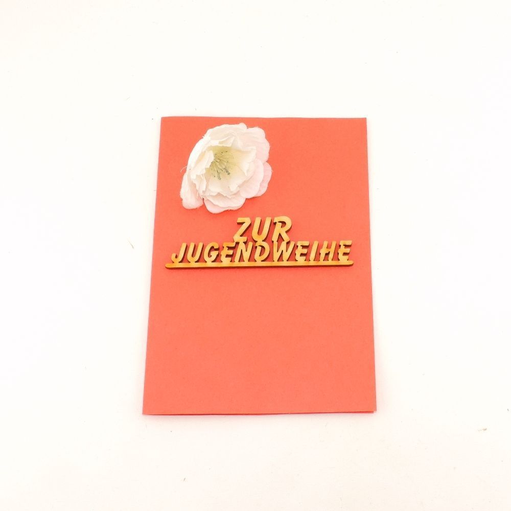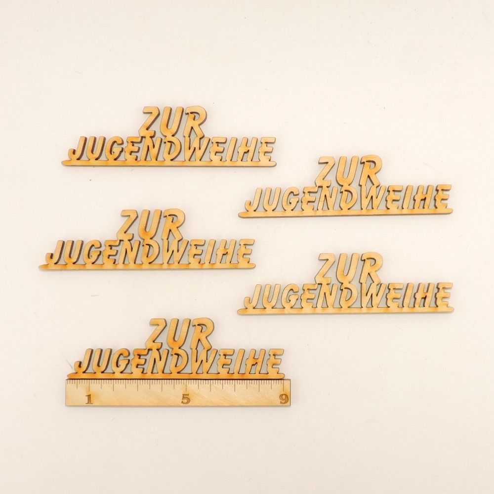 5 Stück Schriftzug " Zur Jugendweihe " aus Holz 9 cm Karten Geschenk Dekoration