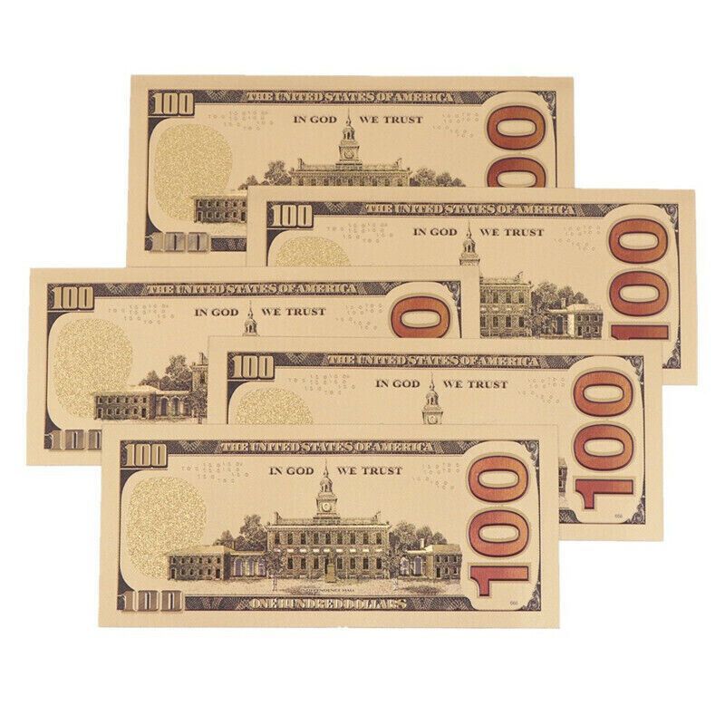 5 Stück Souvenier 100 Dollar - 24 K vergoldeter USA Schein(GF1/24/30)