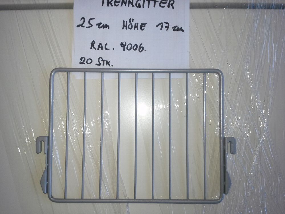 Das Tegometall Trenngitter ist zu verwenden als Seiten- und Trenngitter für Frontgitter. Bezeichnung: Tegometall Trenngitter Höhe: 17cm Material: Stahl Ral 9006 Tiefe: 25 cm Anwendungsbereich: Zum Einstecken in Frontgitter
