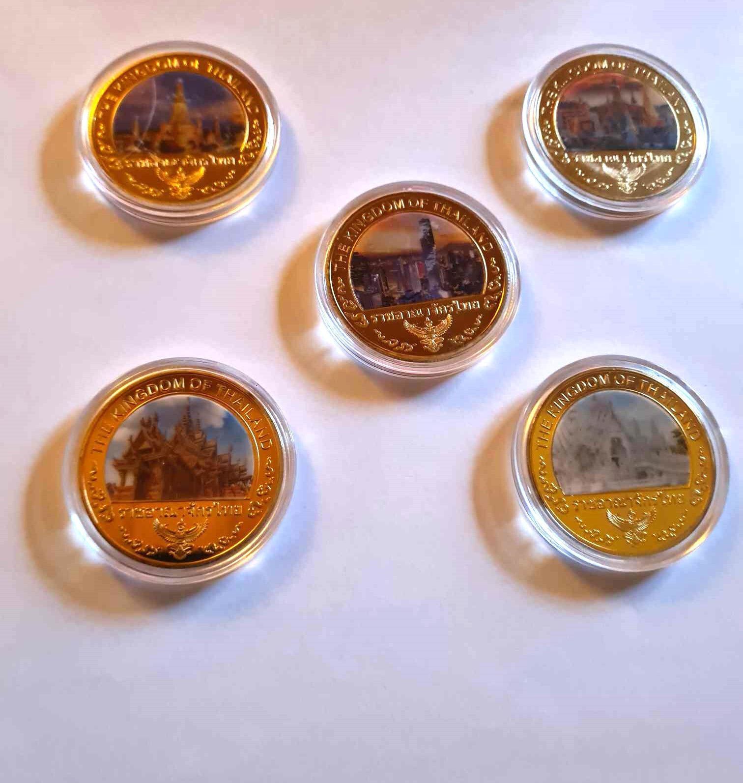 5 Stück Thailands Sehenswürdigkeiten Medaillen/Souvenir/ vergoldet (TM2410252)
