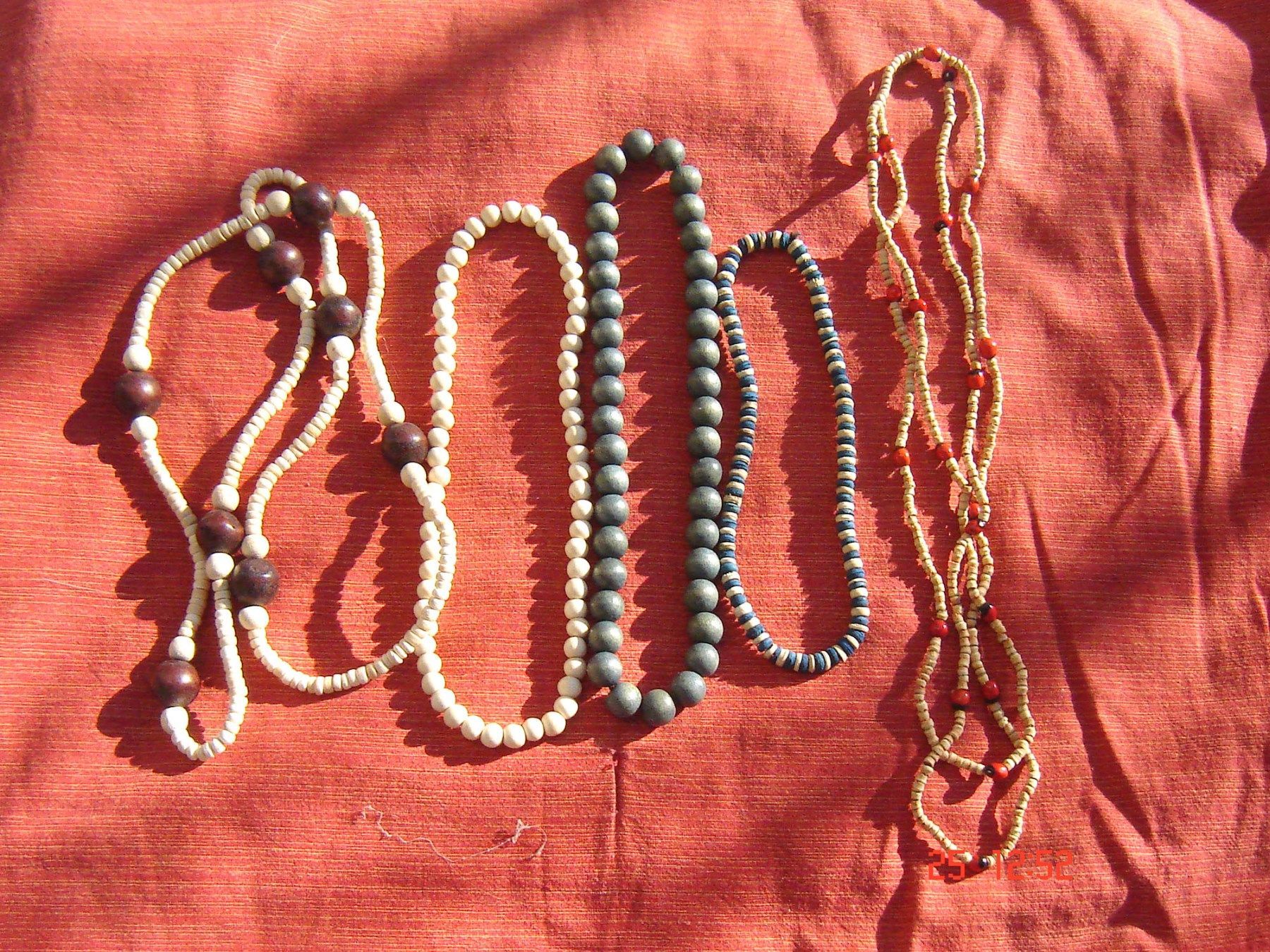 5 Stück verschiedene Ketten Perlen aus Holz oder Kork beige braun blau Nr 2510