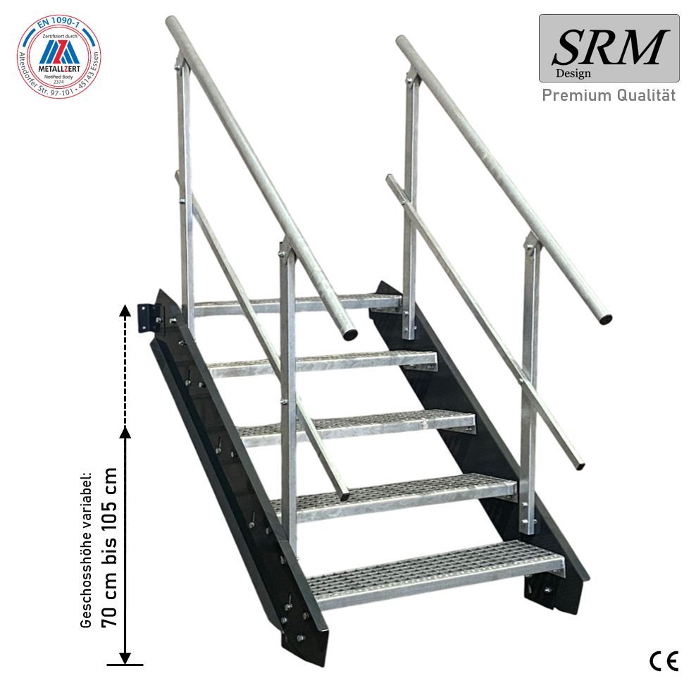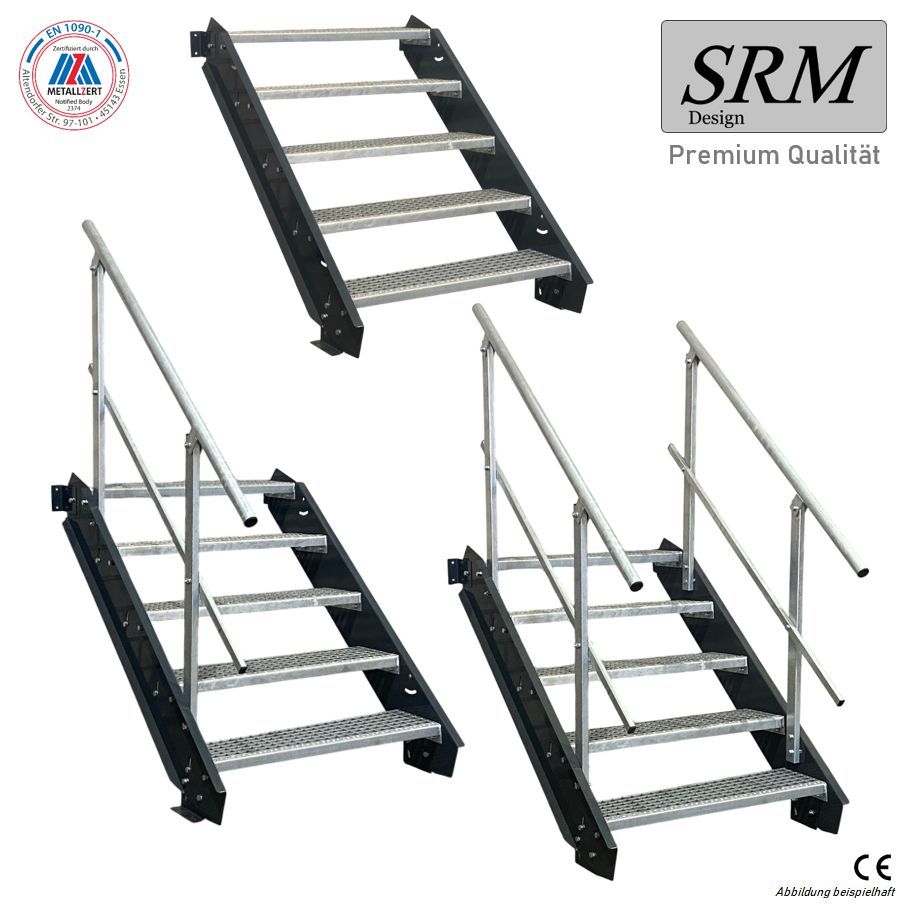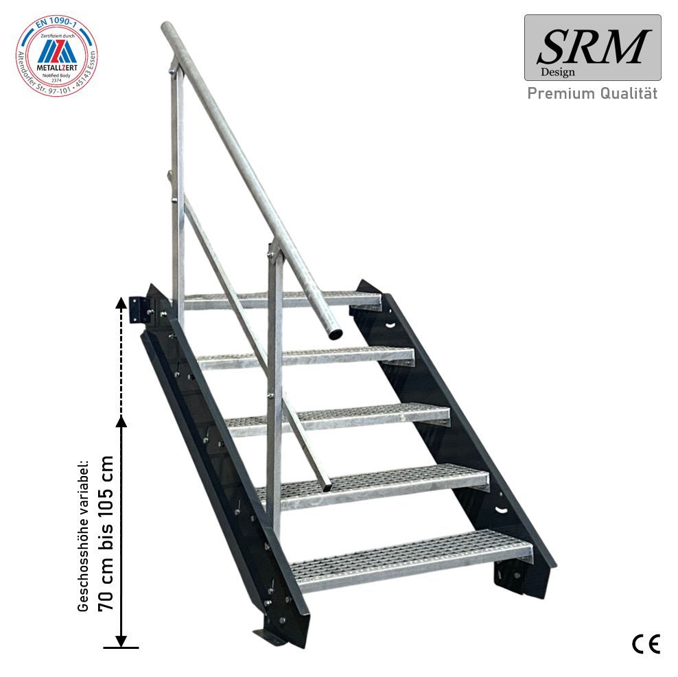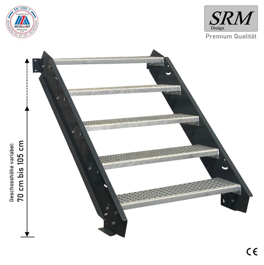 5 Stufen Stahltreppe anthrazit Breite 60 - 160 cm Geschosshöhe 70 - 105 cm