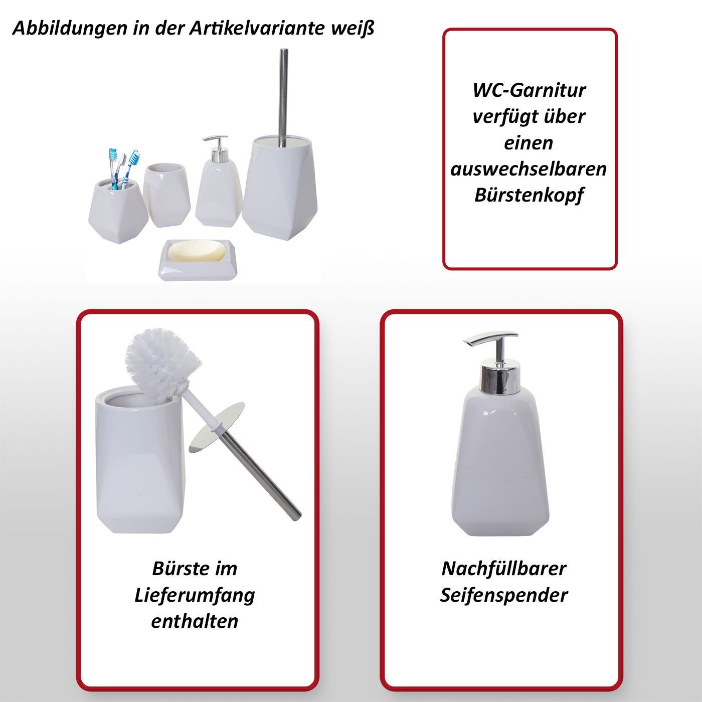 Mendler 5-teiliges Badset HWC-C71, WC-Garnitur Badezimmerset Badaccessoires, Keramik