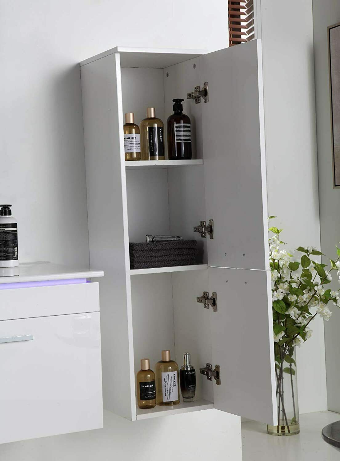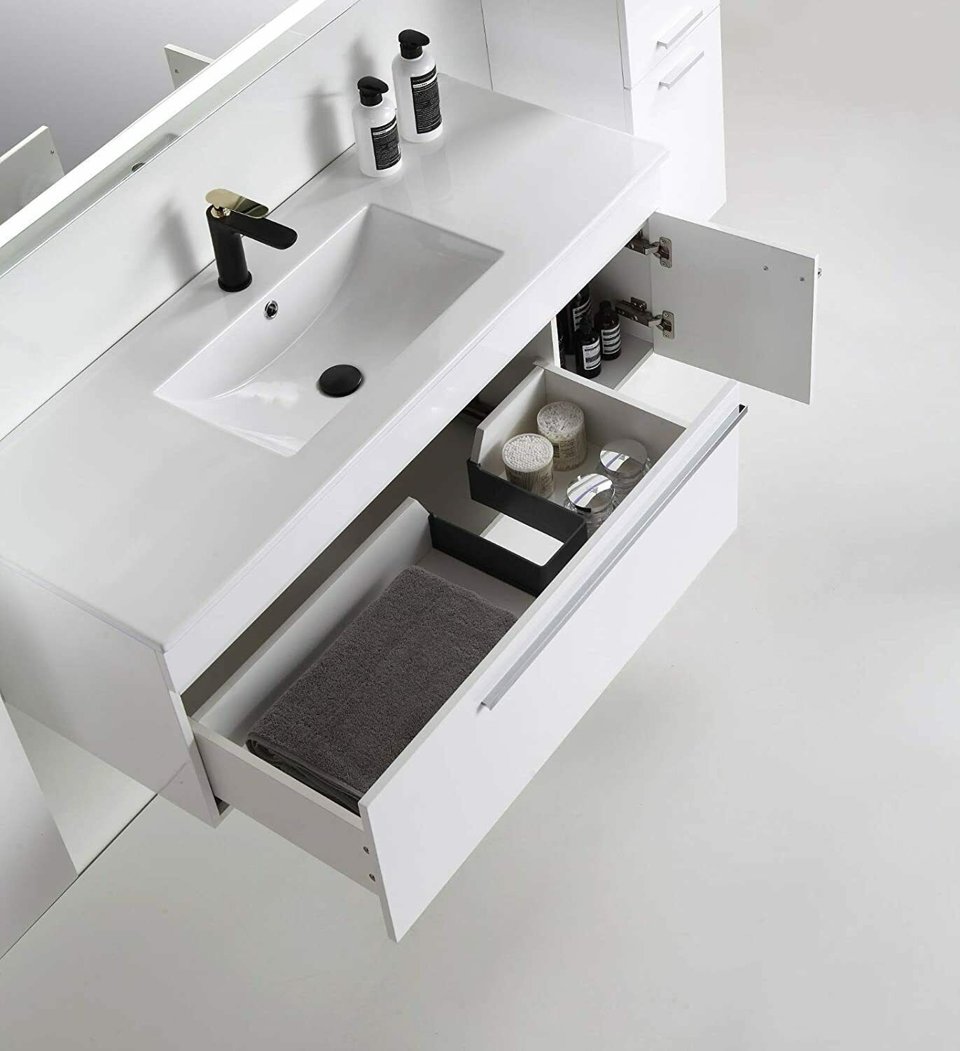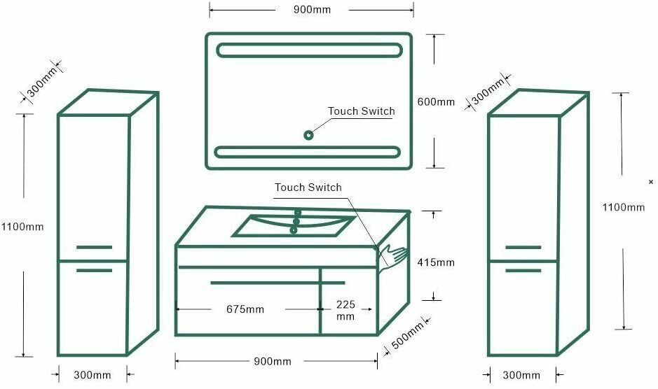 5-tlg Badmöbel Set – 90 cm Weiß Hochglanz mit LED Spiegel