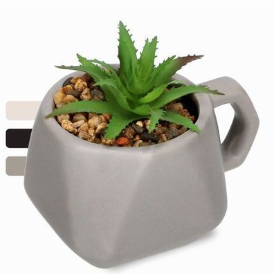 • KADAX Sukkulenten im Topf mit Griff, Künstliche Topfpflanzen Grau