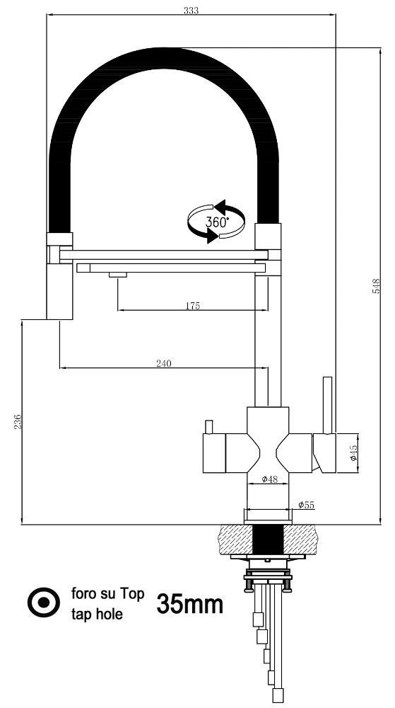 • Empfohlener Arbeitsdruck: min. 1,5bar - max 4,5bar / Empfohlene Wassertemperatur: min. 5°C - max 65°