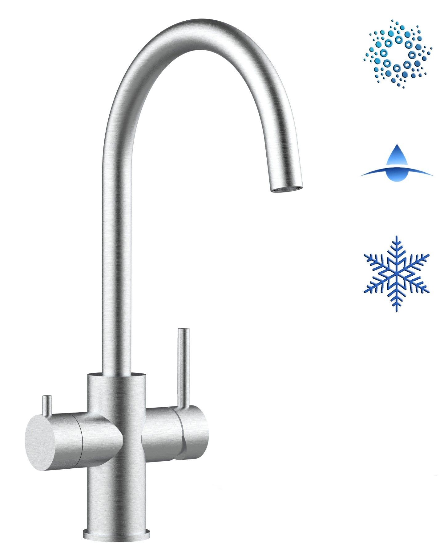 5-Wege-Wasserhahn Edelstahl Massiv Küchenarmatur mit schwenkbarer Auslauf - Gebürstet