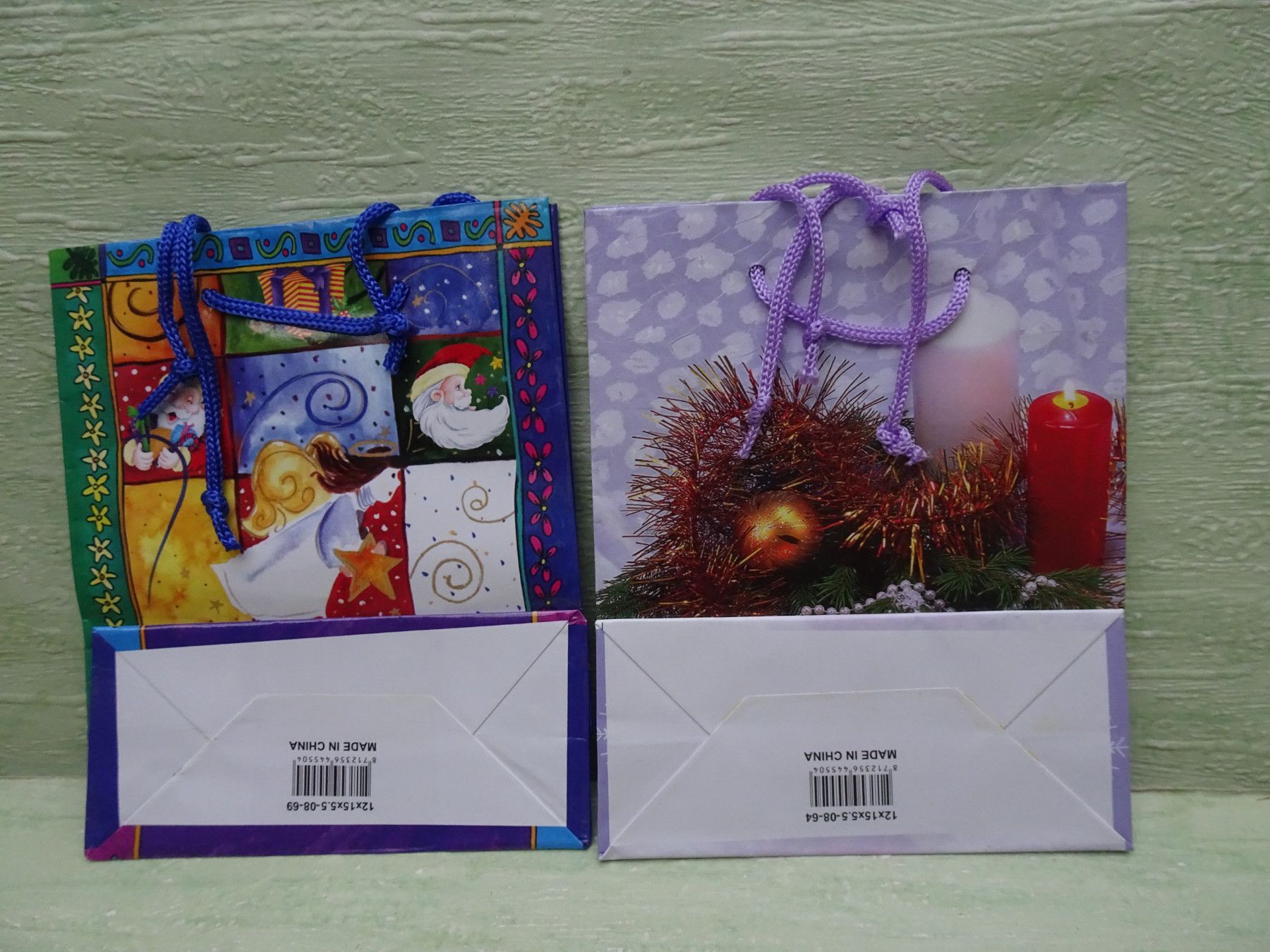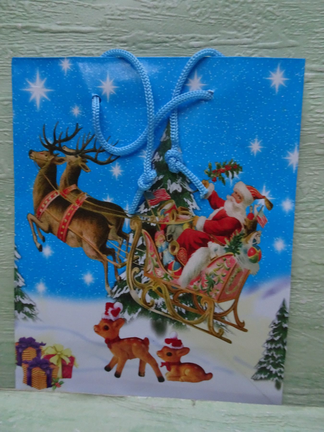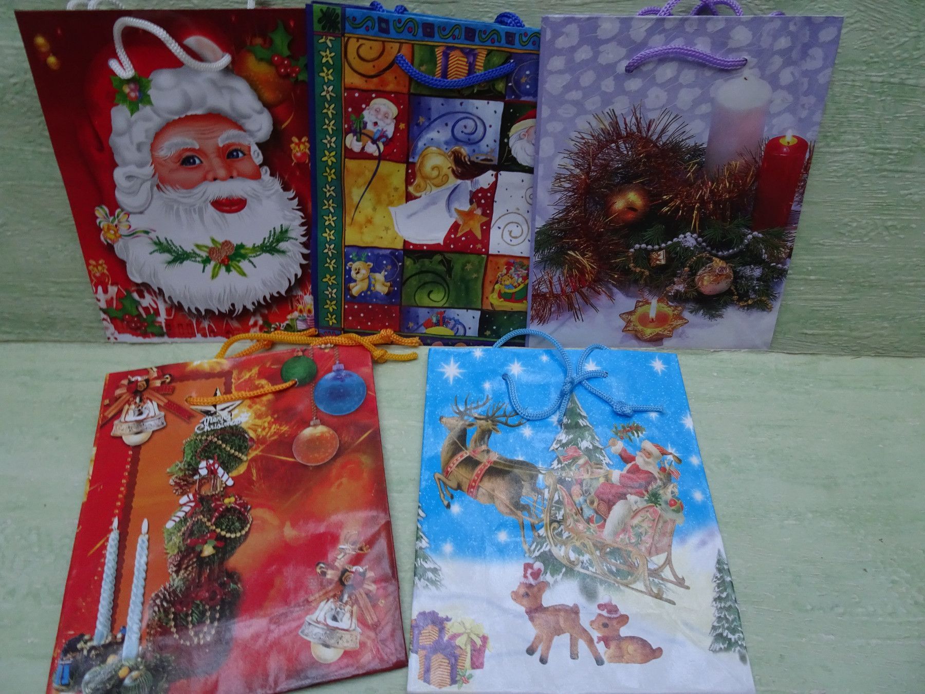 5 Weihnachtstüten Geschenktüten 15x12x5,5cm Hochglanz & Kordelband
