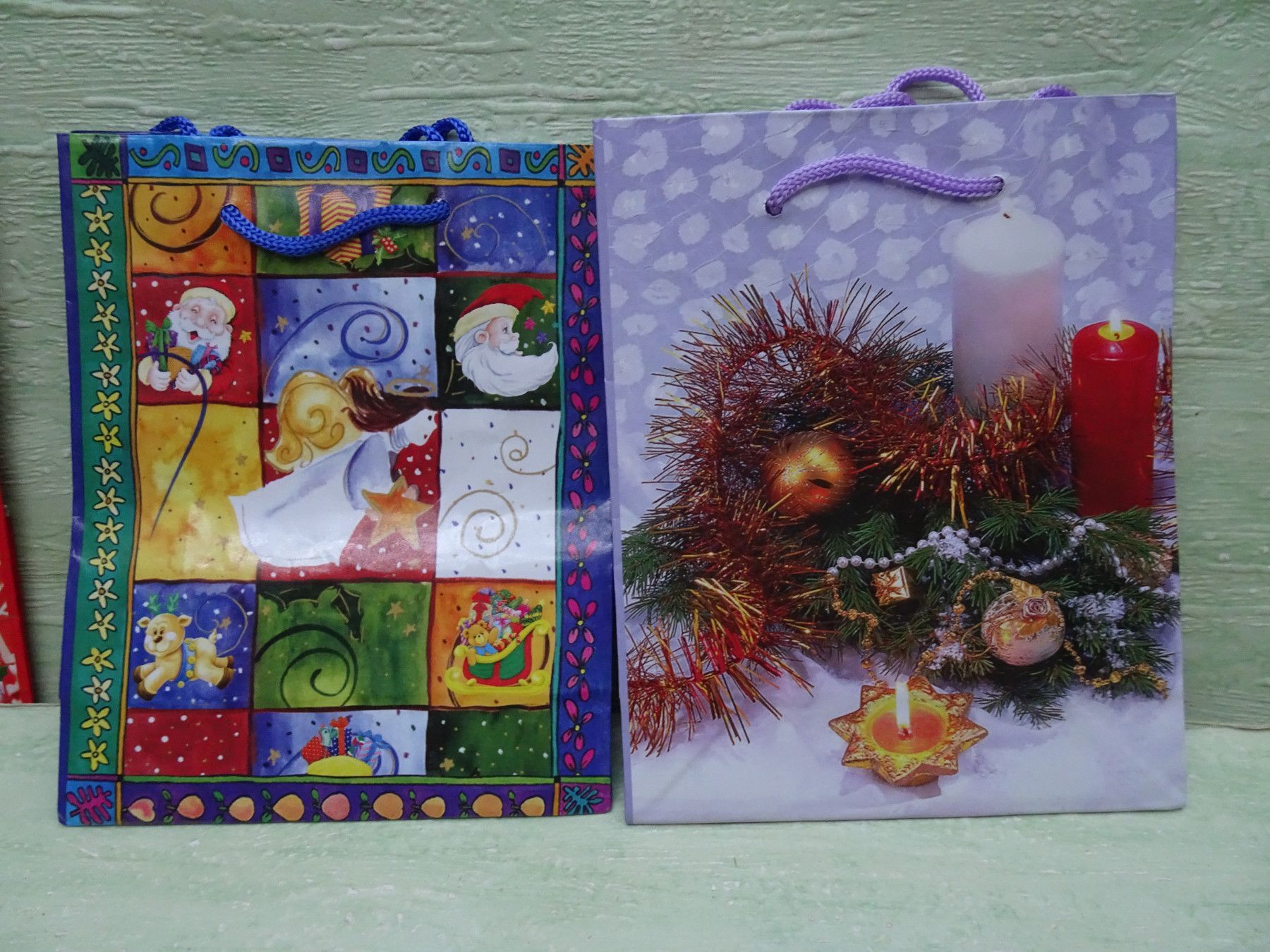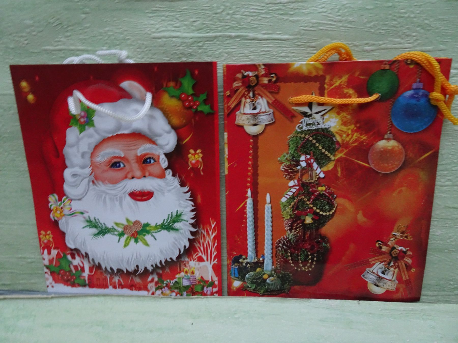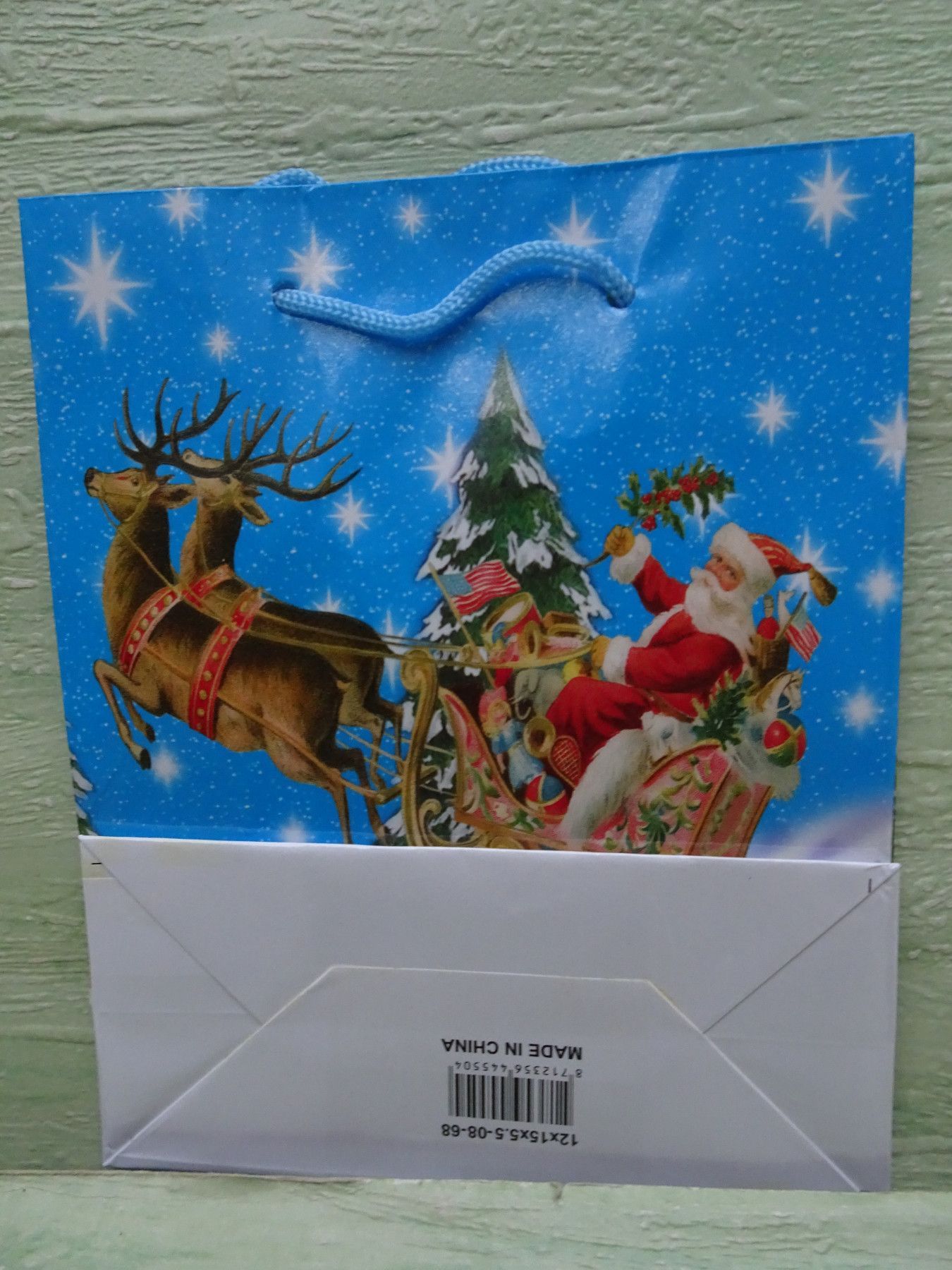 5 Weihnachtstüten Geschenktüten 15x12x5,5cm Hochglanz & Kordelband