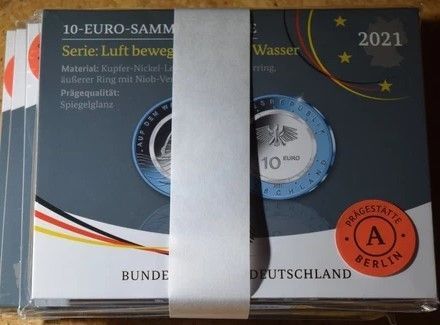 5 x 10 Euro Sammlerm. BRD 2021 "Luft bewegt - Auf dem Wasser" A-J, PP, OVP im Blister