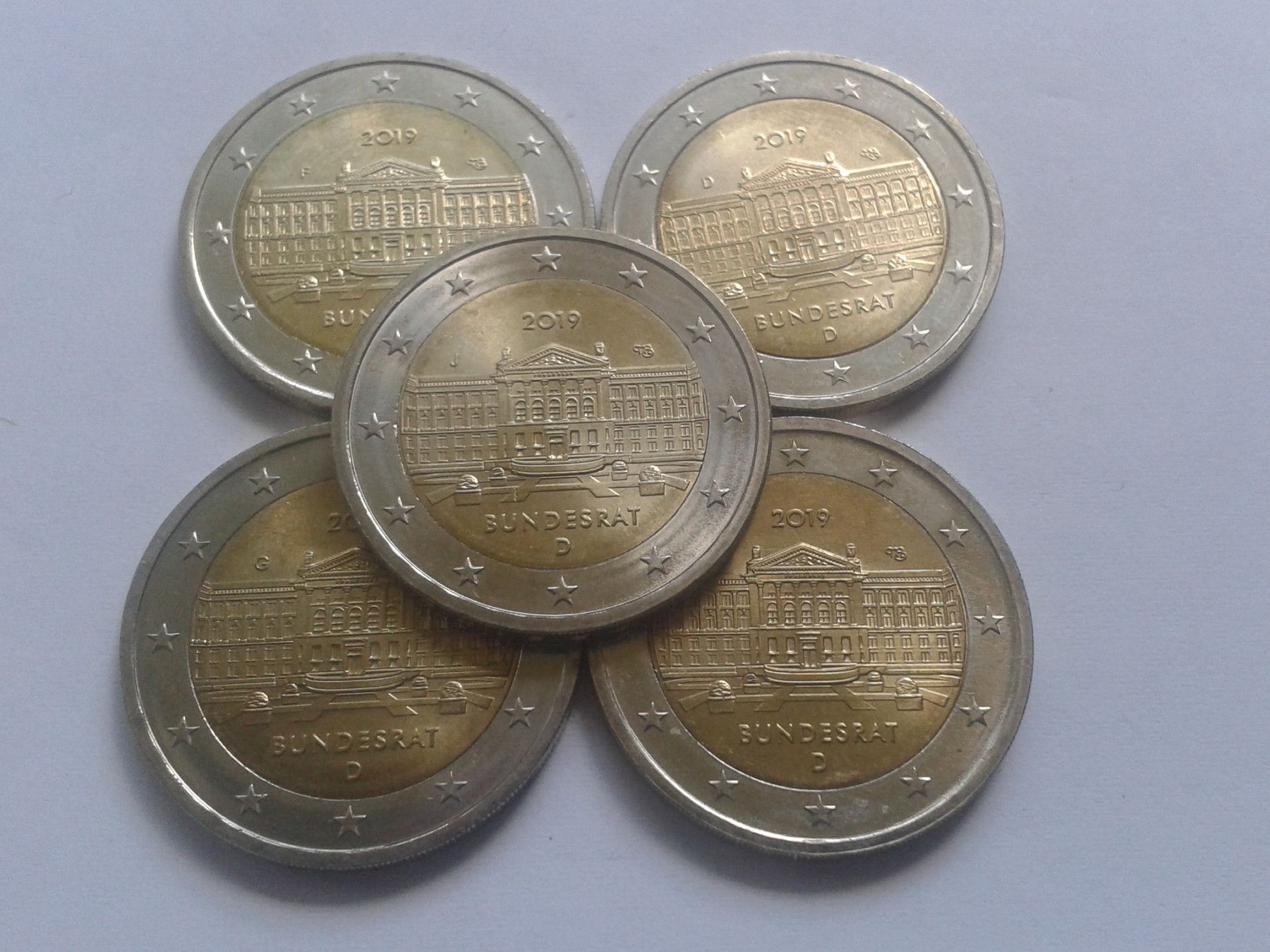 5 x 2 euro 2019 ADFGJ Deutschland Bundesrat bfr. bankfrisch