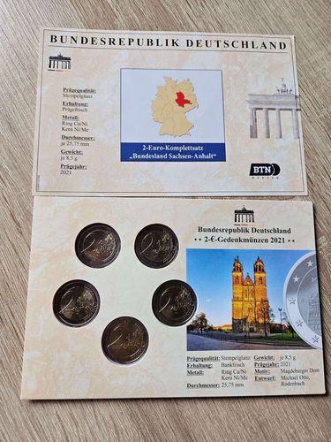 5 x 2 Euro BRD 2021 Sachsen-Anh. "Magdeburger Dom" St, Neu, OVP im Blister v. BTN m.Z