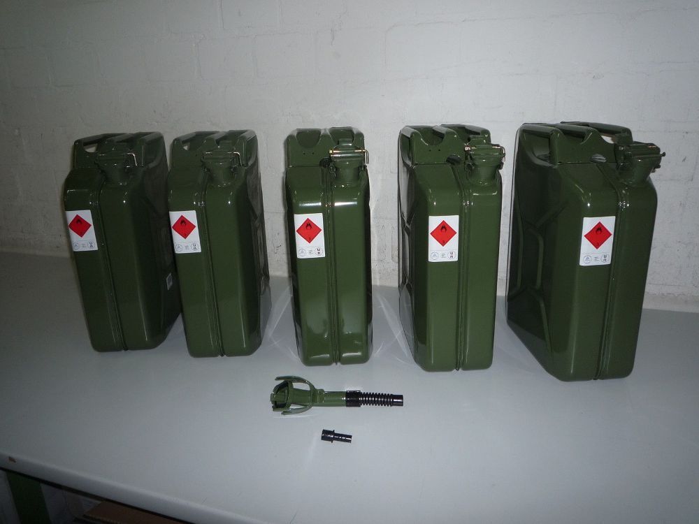 5 x 20 Liter Benzinkanister Metall GGVS mit Sicherungsstift inkl. Auslaufrohr