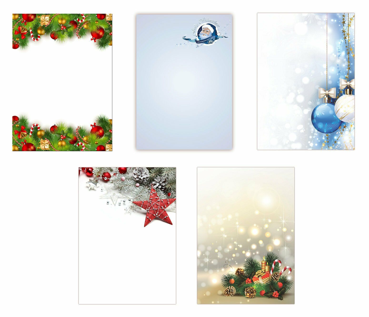 5 x 5 Blatt Motivpapier Briefpapier Kugeln Weihnachtsmann (Weihnachten-5229)