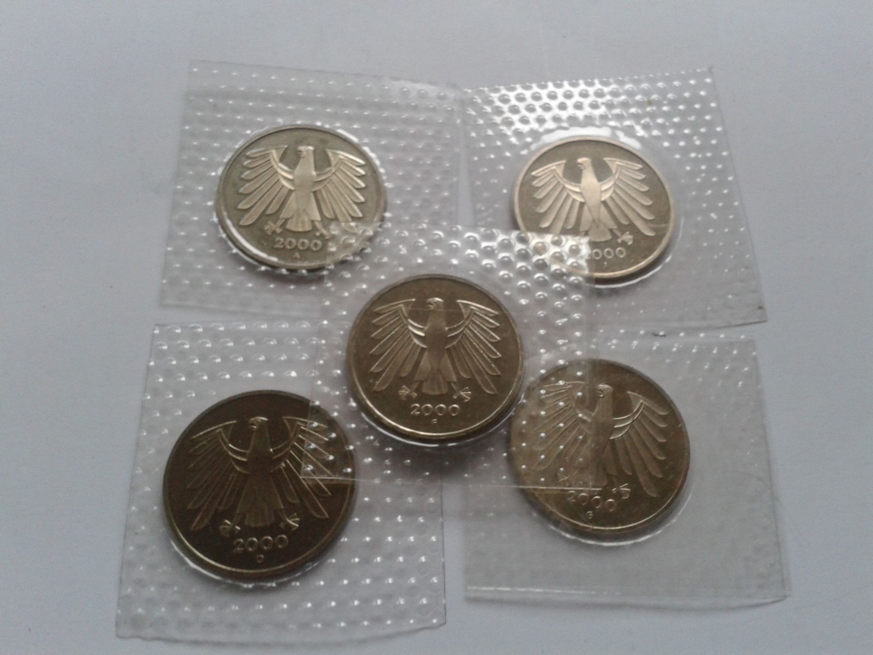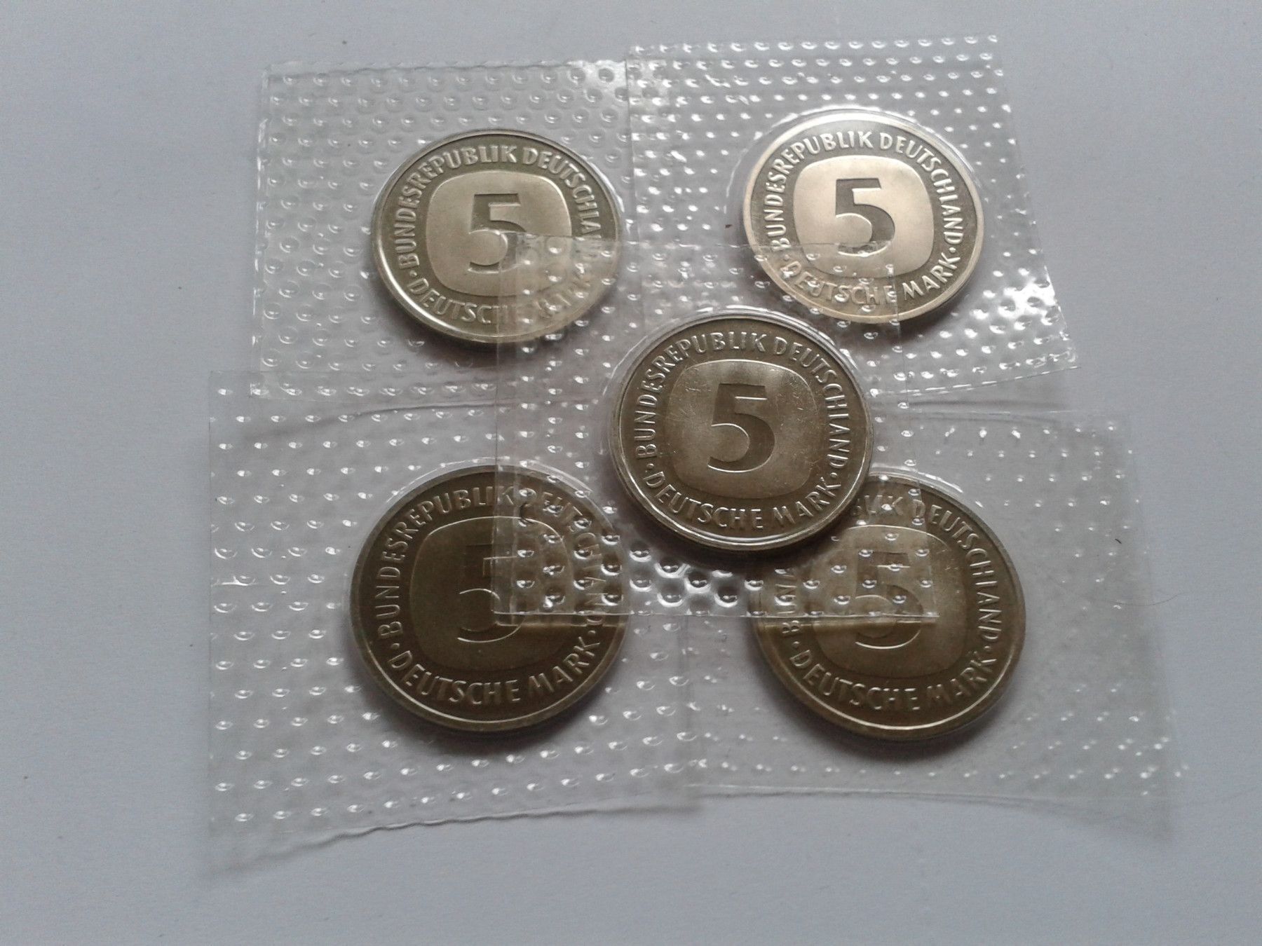 Set 5x5 Mark ADFGJ (alle 5 Prägestätten) der Bundesrepublik Deutschland in bschnittener Originalfolie. bei Fragen: