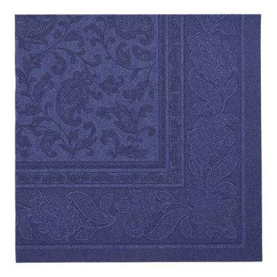 • 5 x 50 Servietten "ROYAL Collection" 1/4-Falz 40 cm x 40 cm dunkelblau "Arabesque"