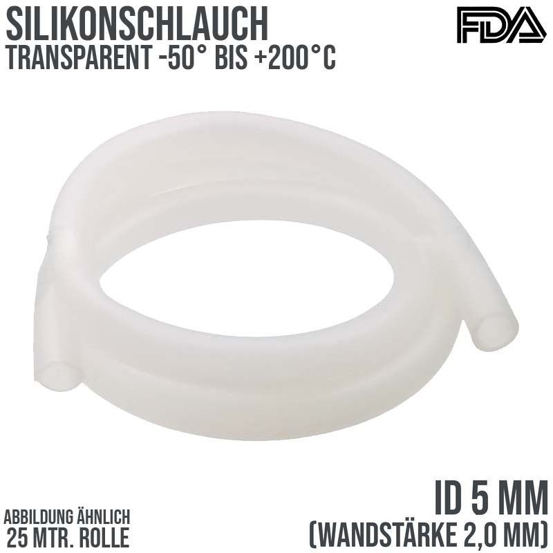 5 x 9 mm Silikonschlauch Milchschlauch lebensmittelecht FDA 0,50 bar - 25 m