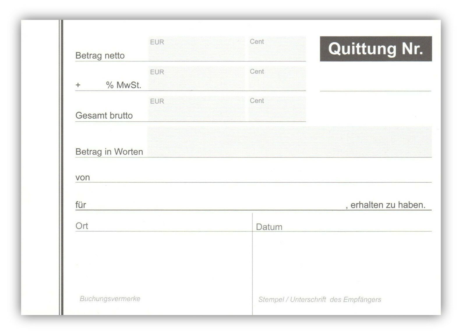 5 x Quittungsblock DIN A6 (2 x 40 Blatt) schwarz Quittung selbstdurchschreibend