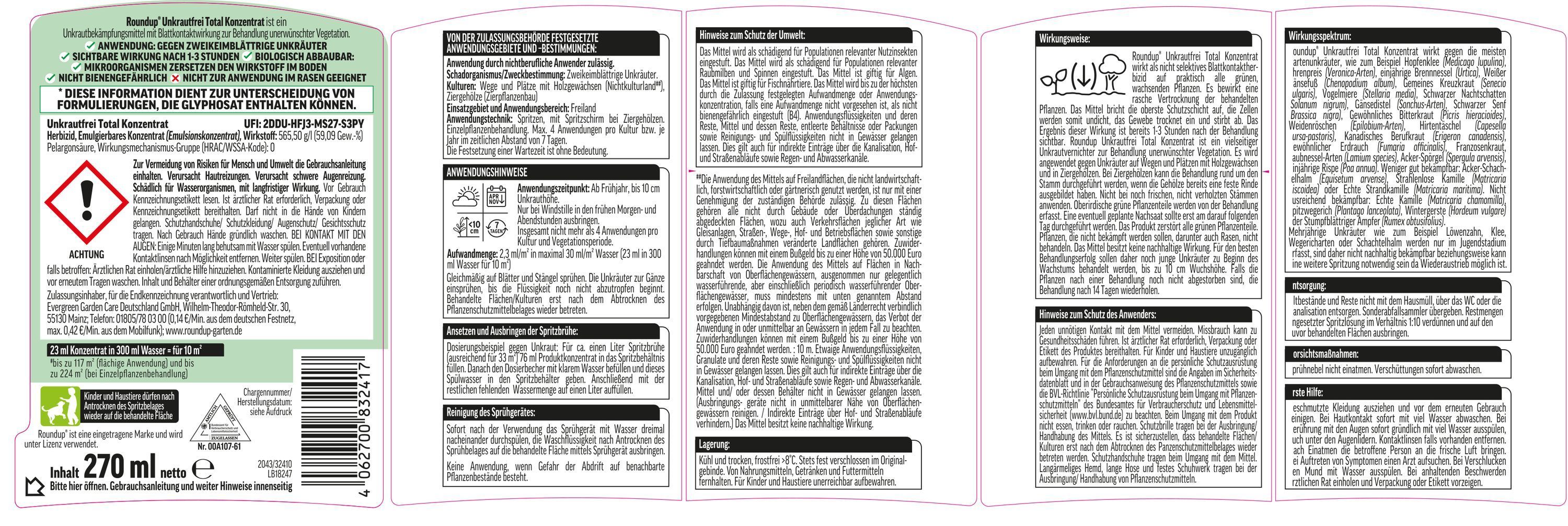 5 x ROUNDUP® Unkrautfrei Total Konzentrat, 270 ml