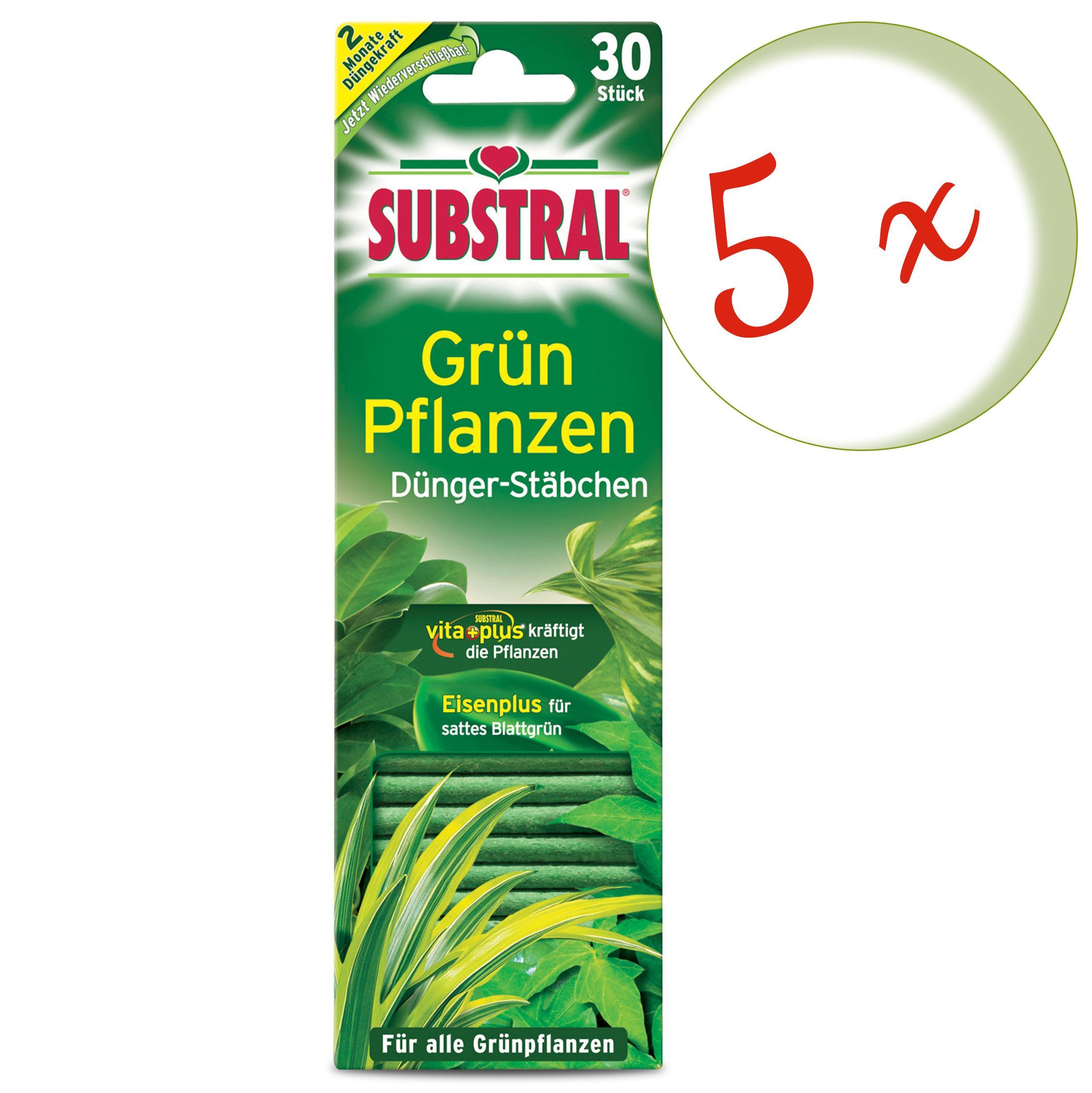 5 x SUBSTRAL® Grünpflanzen Dünger-Stäbchen, 30 Stück