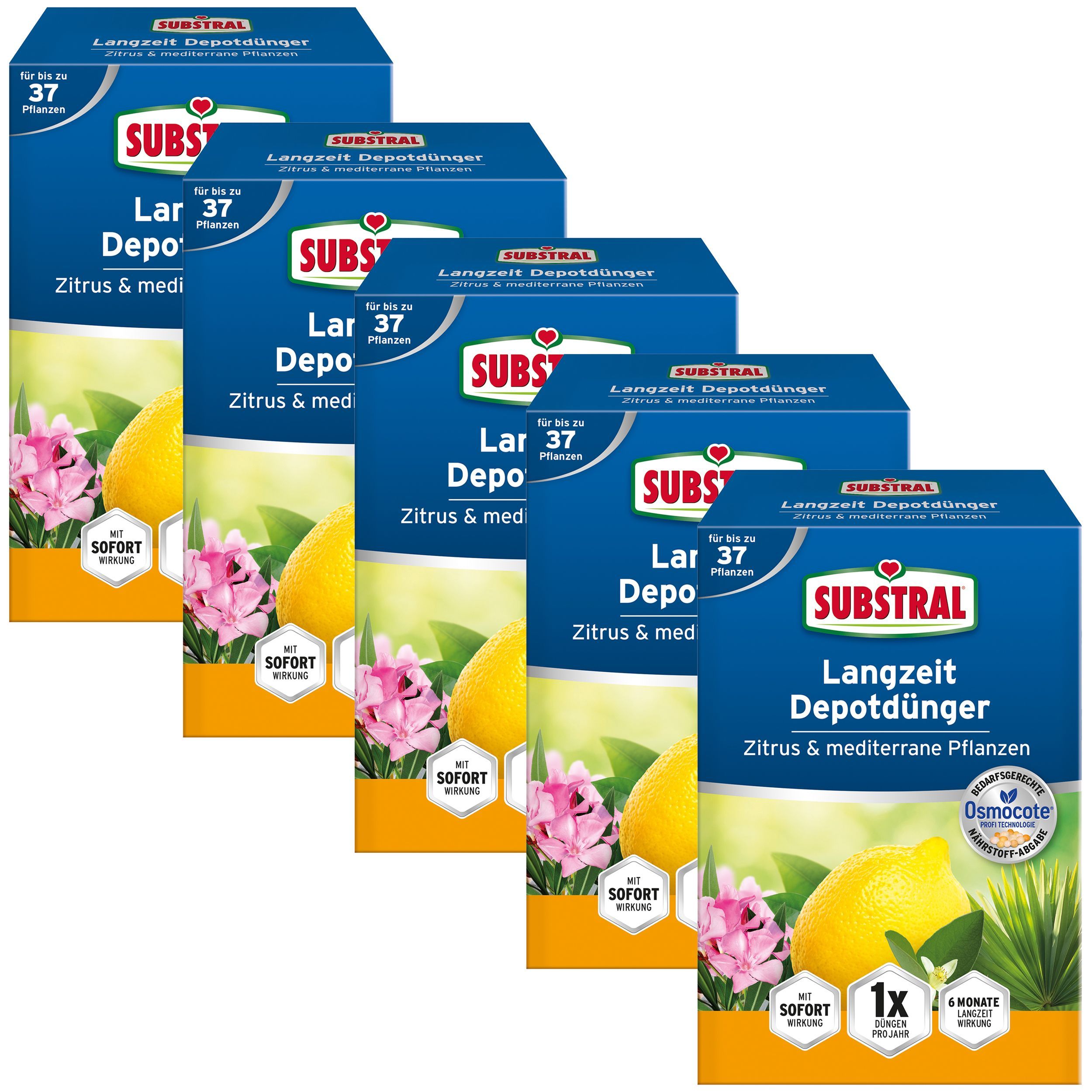 5 x SUBSTRAL® Langzeit Depotdünger für Zitrus & Mediterrane Pflanzen, 750 g