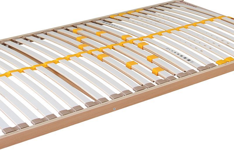 Duostar Praktischer Lattenrost für tägliches Schlafen mit nur 5 cm Bauhöhe. Vorgespannte Federleisten in doppelten Kautschukkappen sind verteilt in 5 anatomische Zonen. Der Mittelgurt verbessert die Stabilität und Tragfähigkeit des Lattenrostes. Die Härte im Lendenbereich kann man durch die Schieber