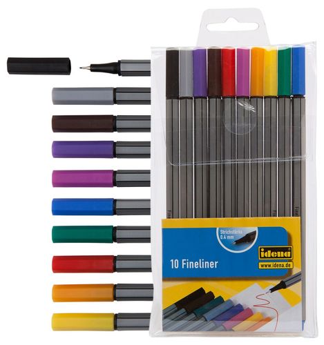 10 Feinliner Strichstärke: 0,4mm Farben: gelb, orange, pink, lila, blau, grün, rot, braun, grau, schwarz 10 Feinschreiber im Etui