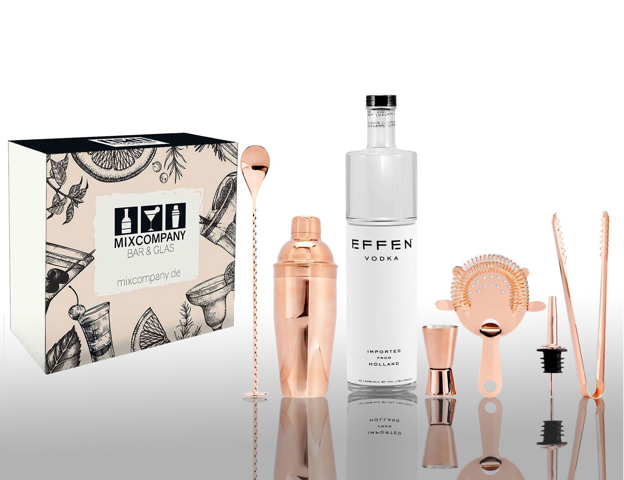 50 Cent Geschenkset Effen Vodka 0,75L (40% Vol) mit 6 teiligem Barset - [Enthäl
