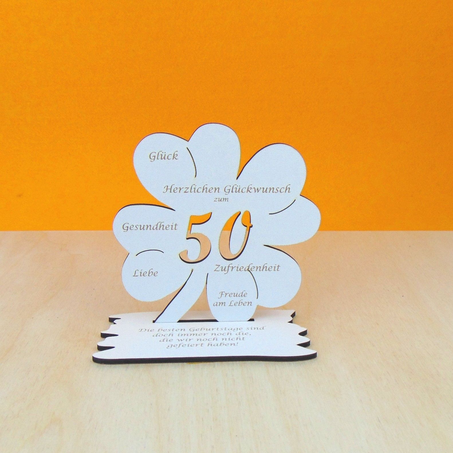 50. Geburtstag Gutscheingeschenk als Kleeblatt in 11 cm im Vintage Style, Weiß. Ein Halter auf der Rückseite dient für einen Gutschein oder ihr Geldscheine. Beidseitig in der Farbe: Vintage Weiß beschichtet mit Gravierten Text. Die besten Geburtstage sind doch immer noch die, die wir noch nicht gefeiert haben! Unterplatte sind in 14 verschiedenen Sprüchen erhältlich, siehe Shop. Alle Geburtstagszahlen sind erhältlich. holzteilchen_diy
